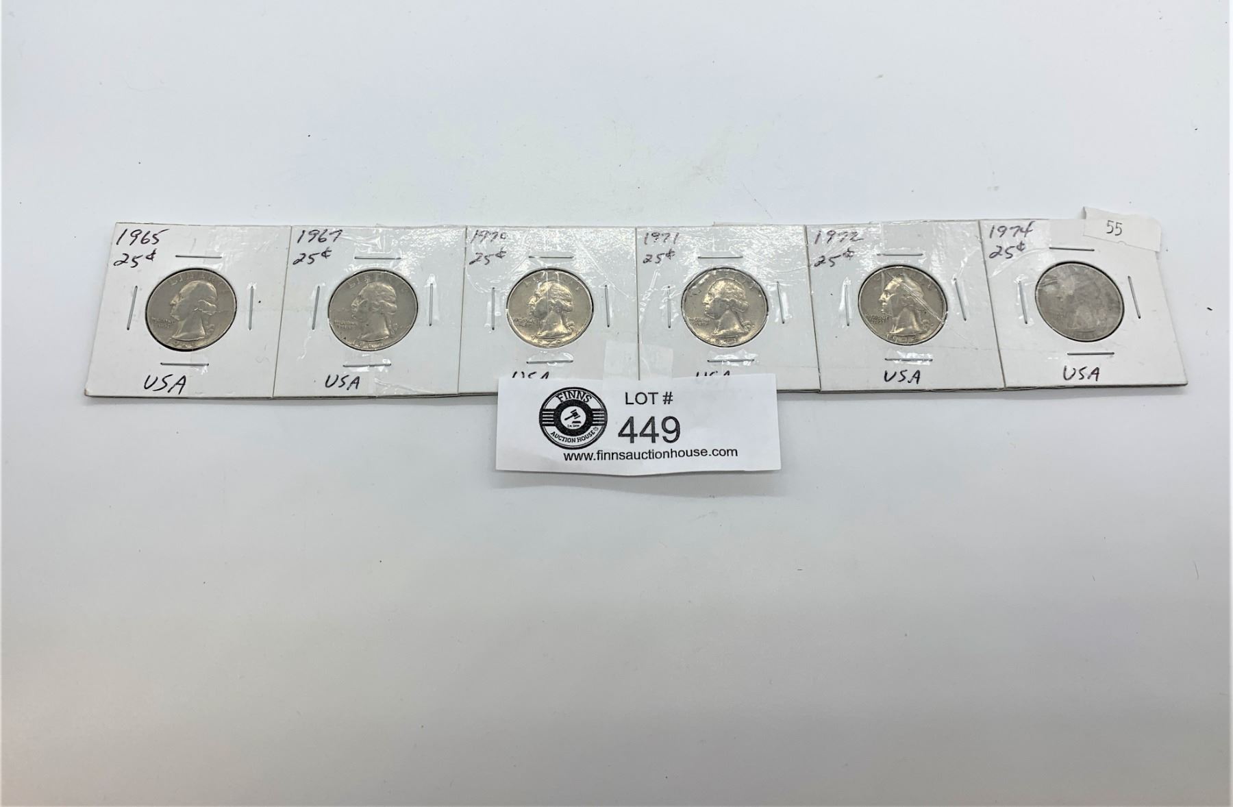 Lot fo American 25 Cent Pieces All In Coin Holders 1965,67,70,71,72 and 1974