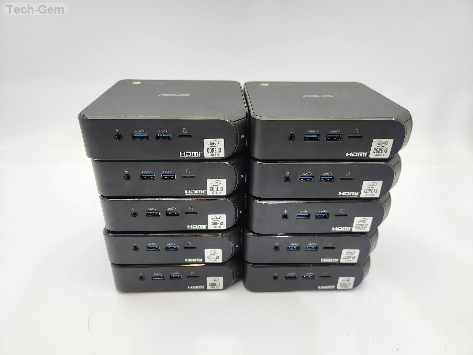 All computers have been wiped and tested and are fully functional. Fresh install of chrome OS has been installed. Intel Core i3-10110U 2.10GHz, 128GB M.2 SSD, 8GB DDR4 RAM. You will receive 10 computers. No power supplies or other accessories included.