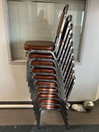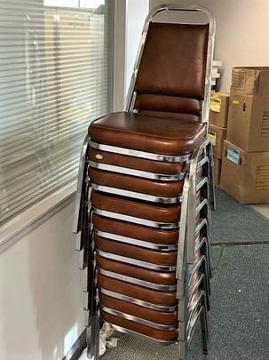 Lot of 10 Banquet Chairs - Brown Leatherette & Chrome - Stackable