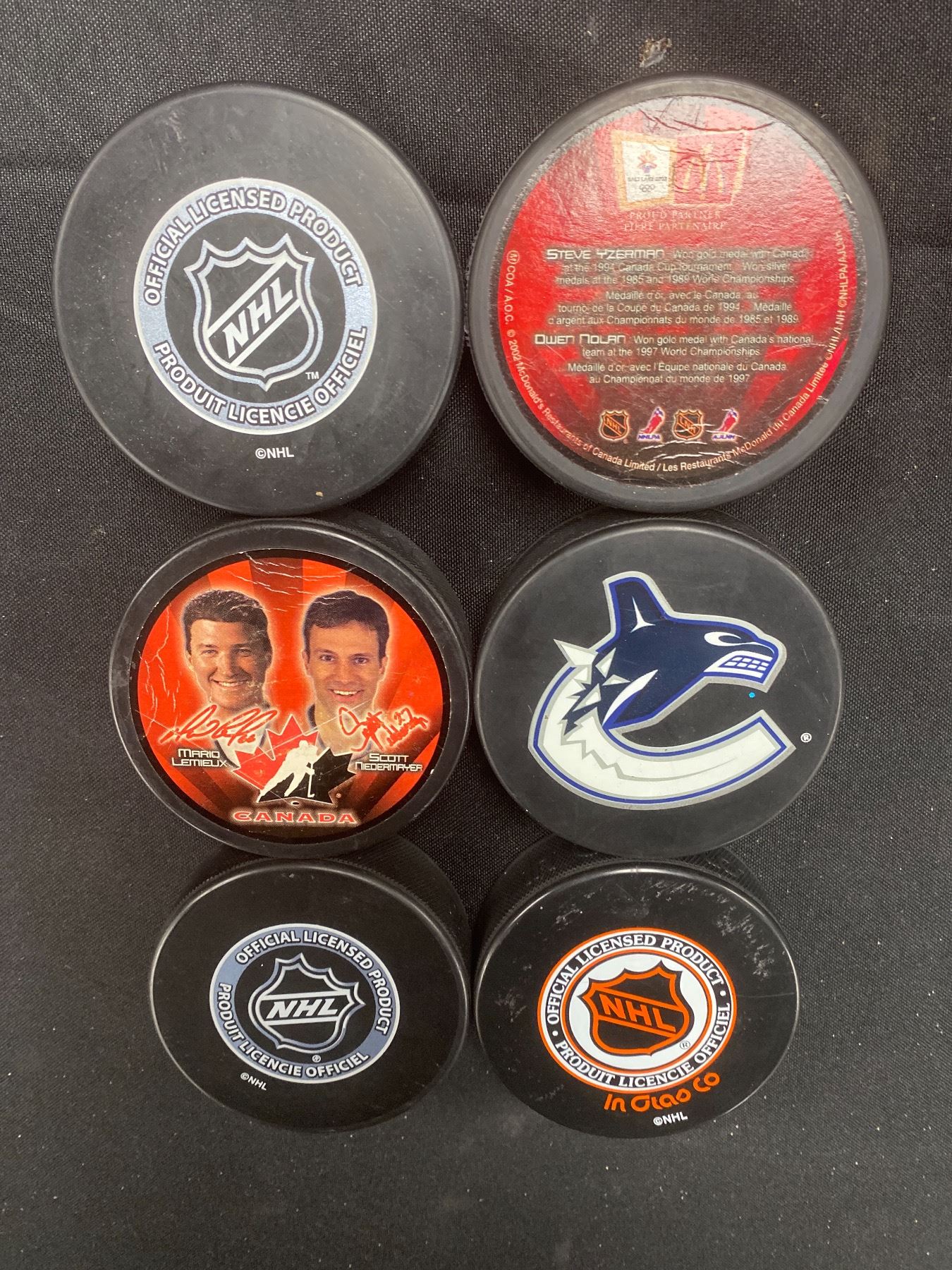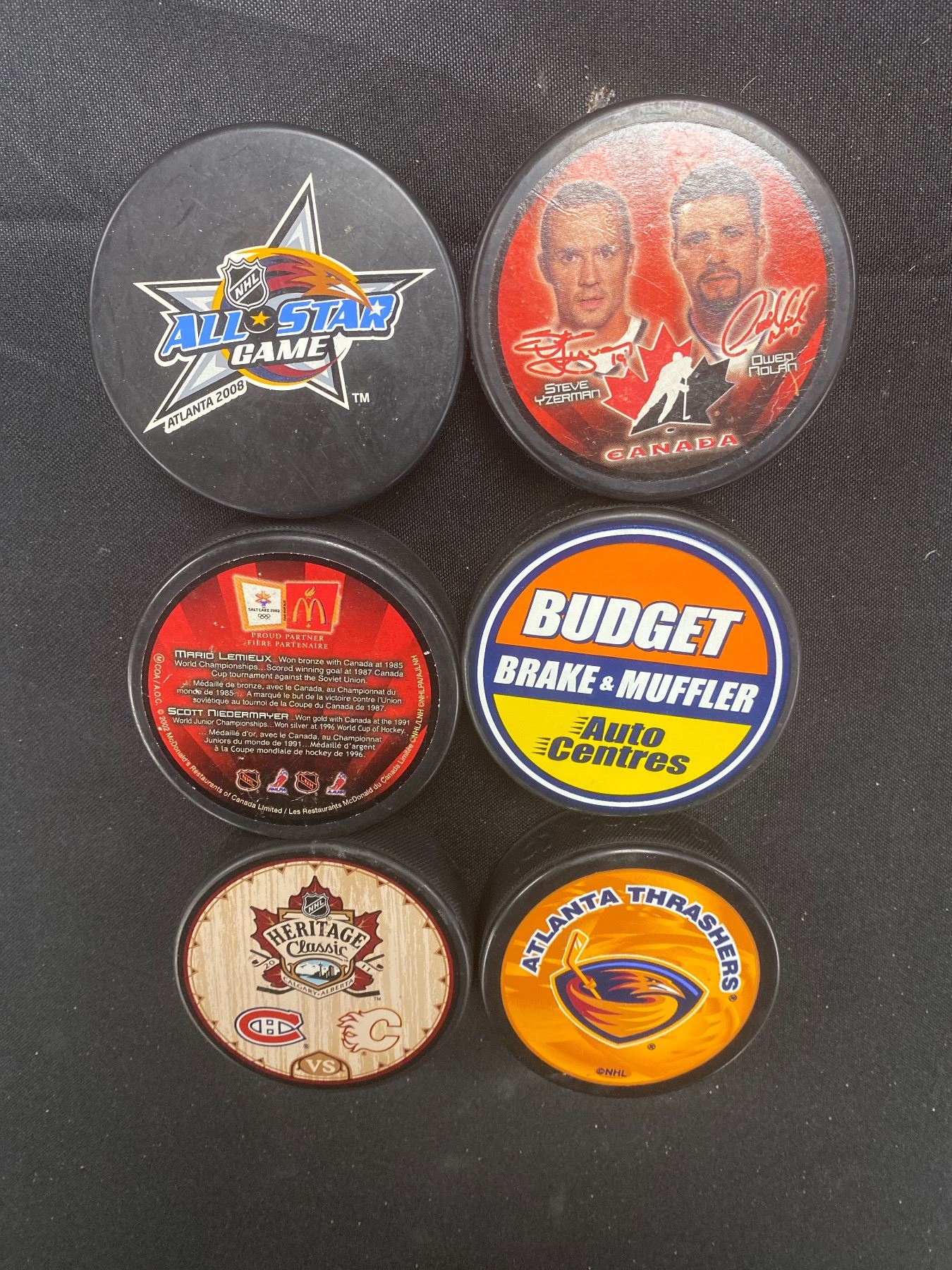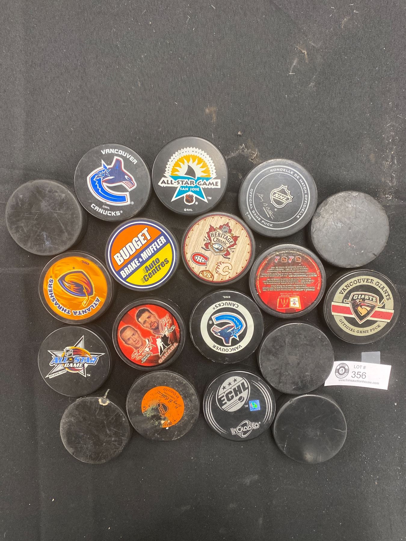 Lot of 18 Old Hockey Pucks, Mcdonalds NHL Etc