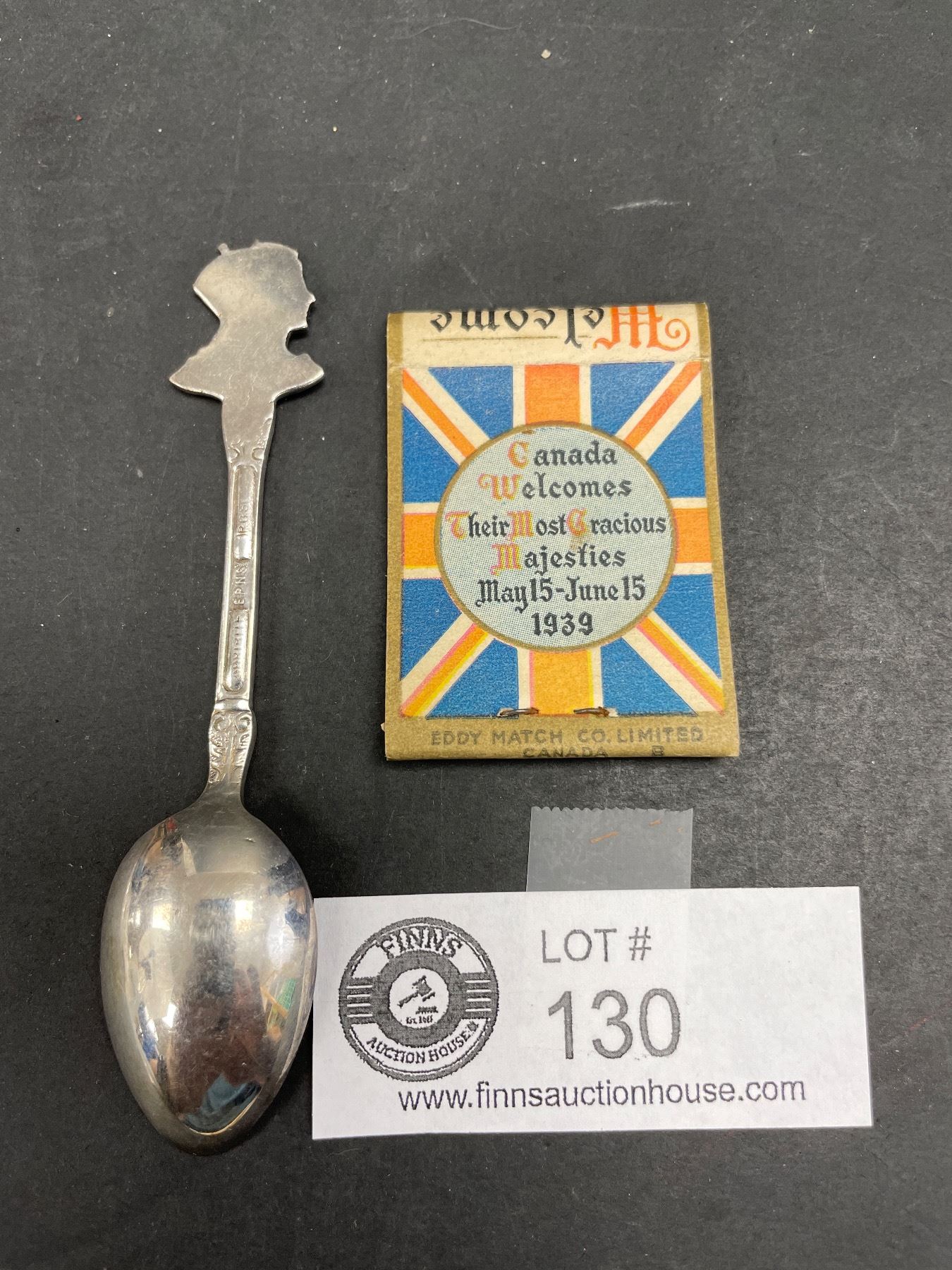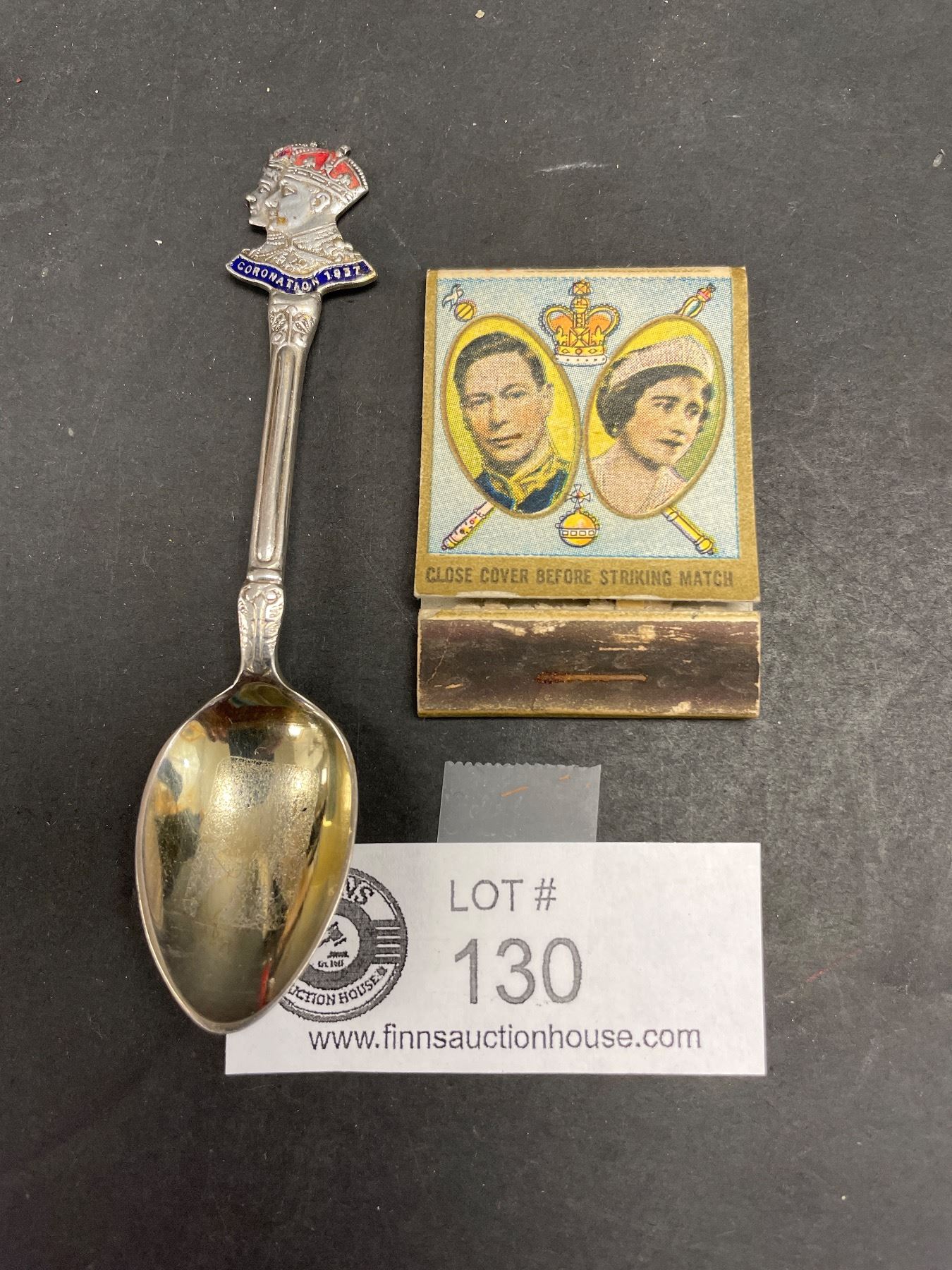 Lot of 2 1930s Royalty Items - Spoon and Matchbook