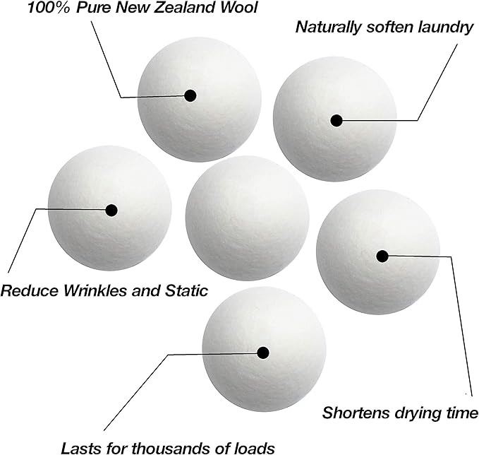 - wool dryer balls xl 6-pack - 100% pure new zealand wool, ecoigy natural fabric softener, reduces wrinkles & drying time, ideal for essential oils, dryer sheets alternative, dryer balls laundry reusable