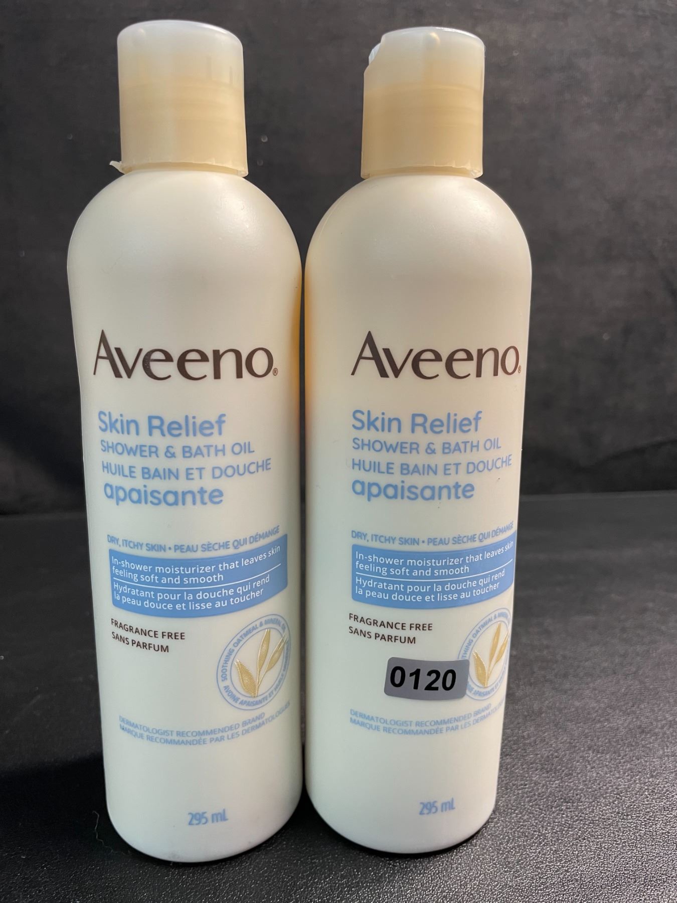 Lot of 2 Aveeno Skin Relief Shower & Bath Oil (295ml) Fragrance-Free - New