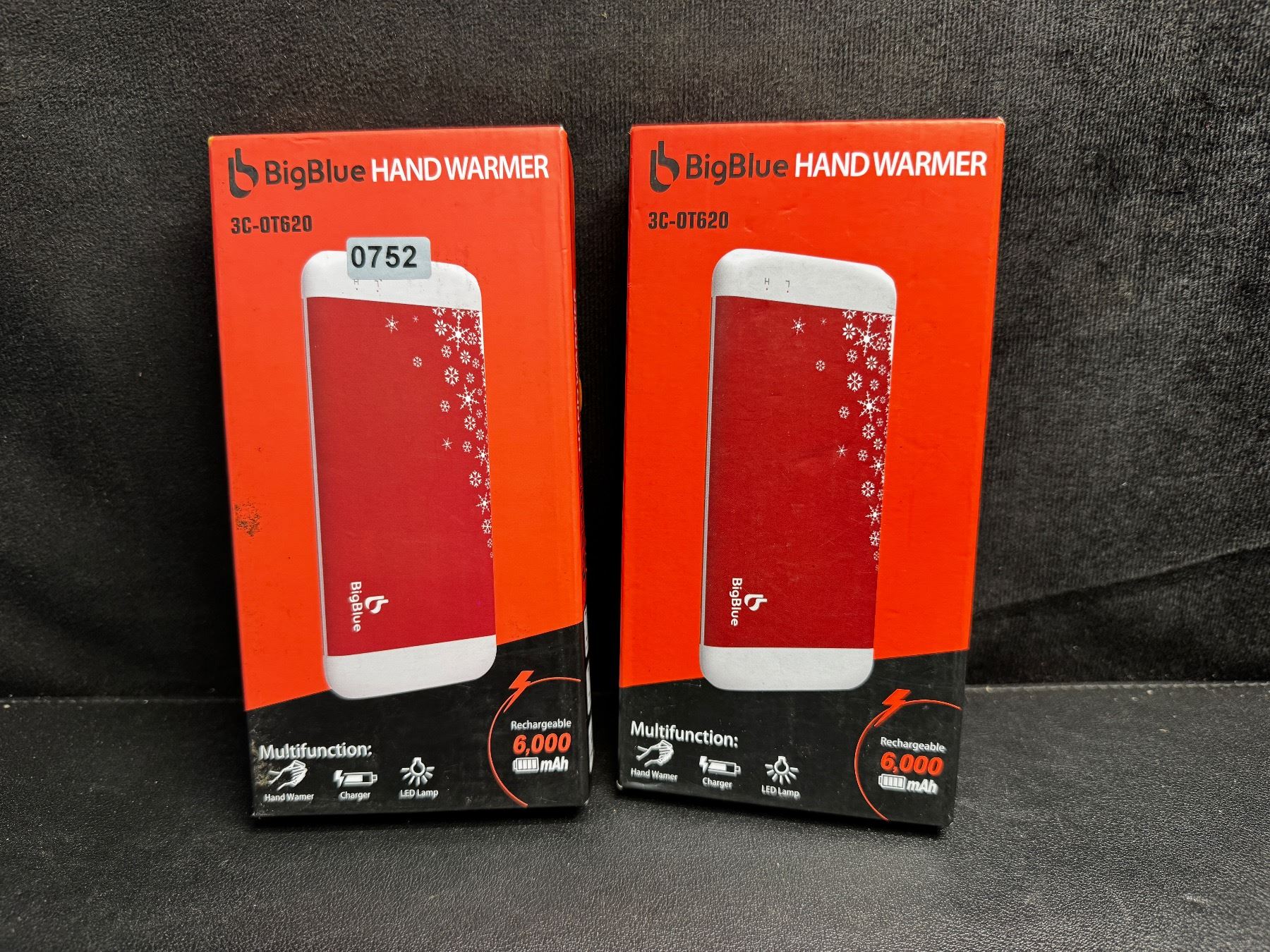 Lot of 2 BigBlue Electric Hand Warmers/Portable Powerbanks (6,000mAh) w/ Emergency Light - New