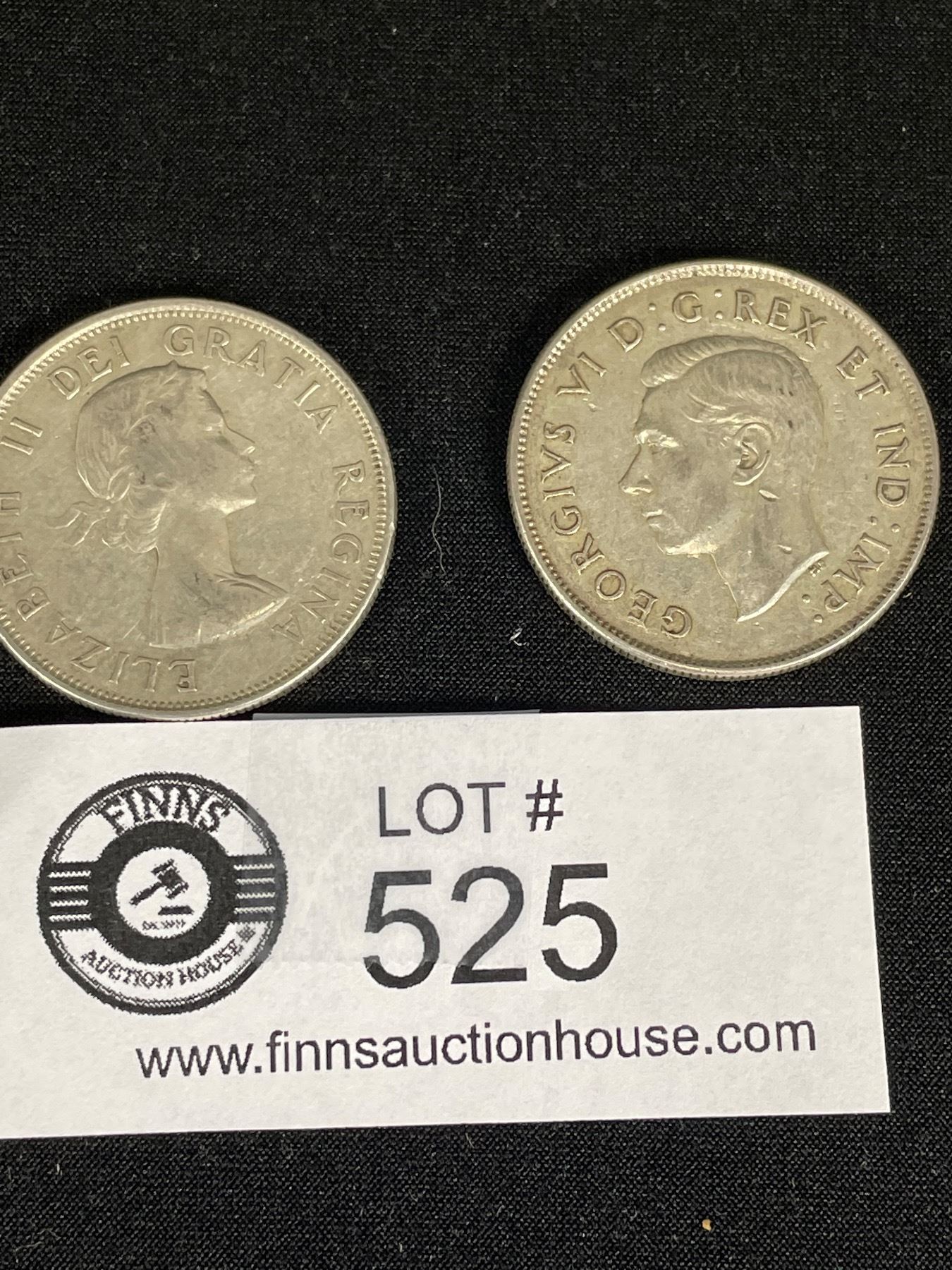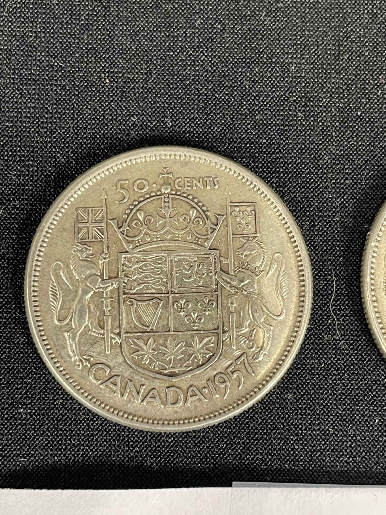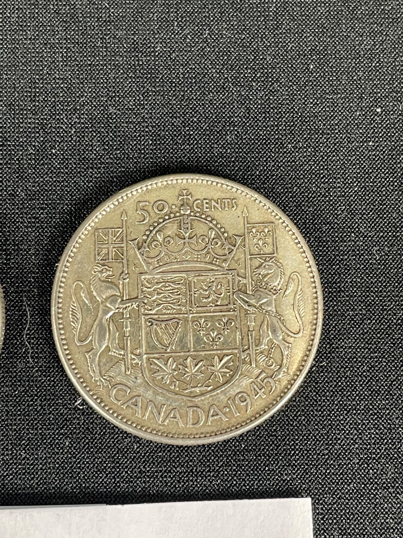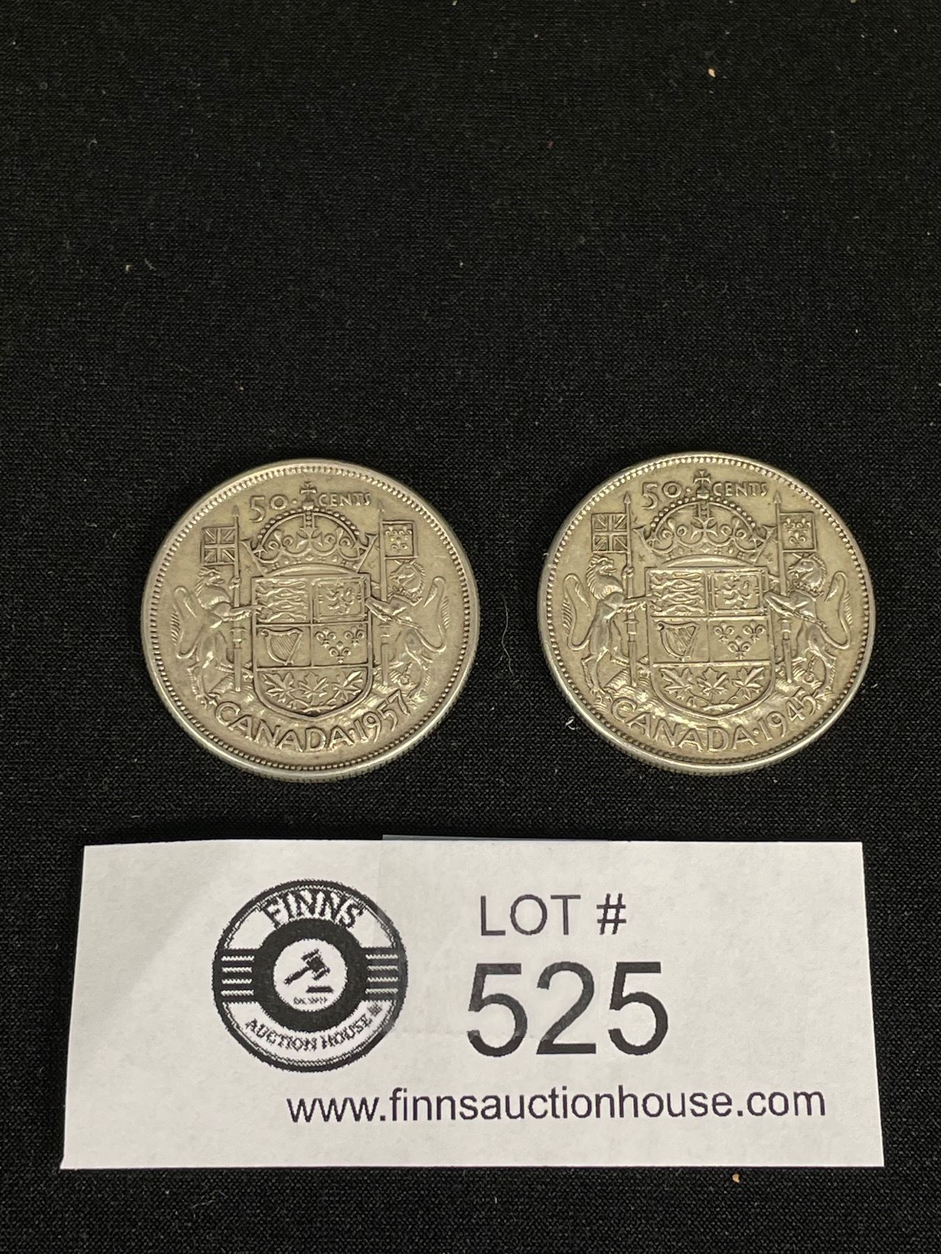 Lot of 2 Canada Silver 50 Cent Coins - 1945, 1957
