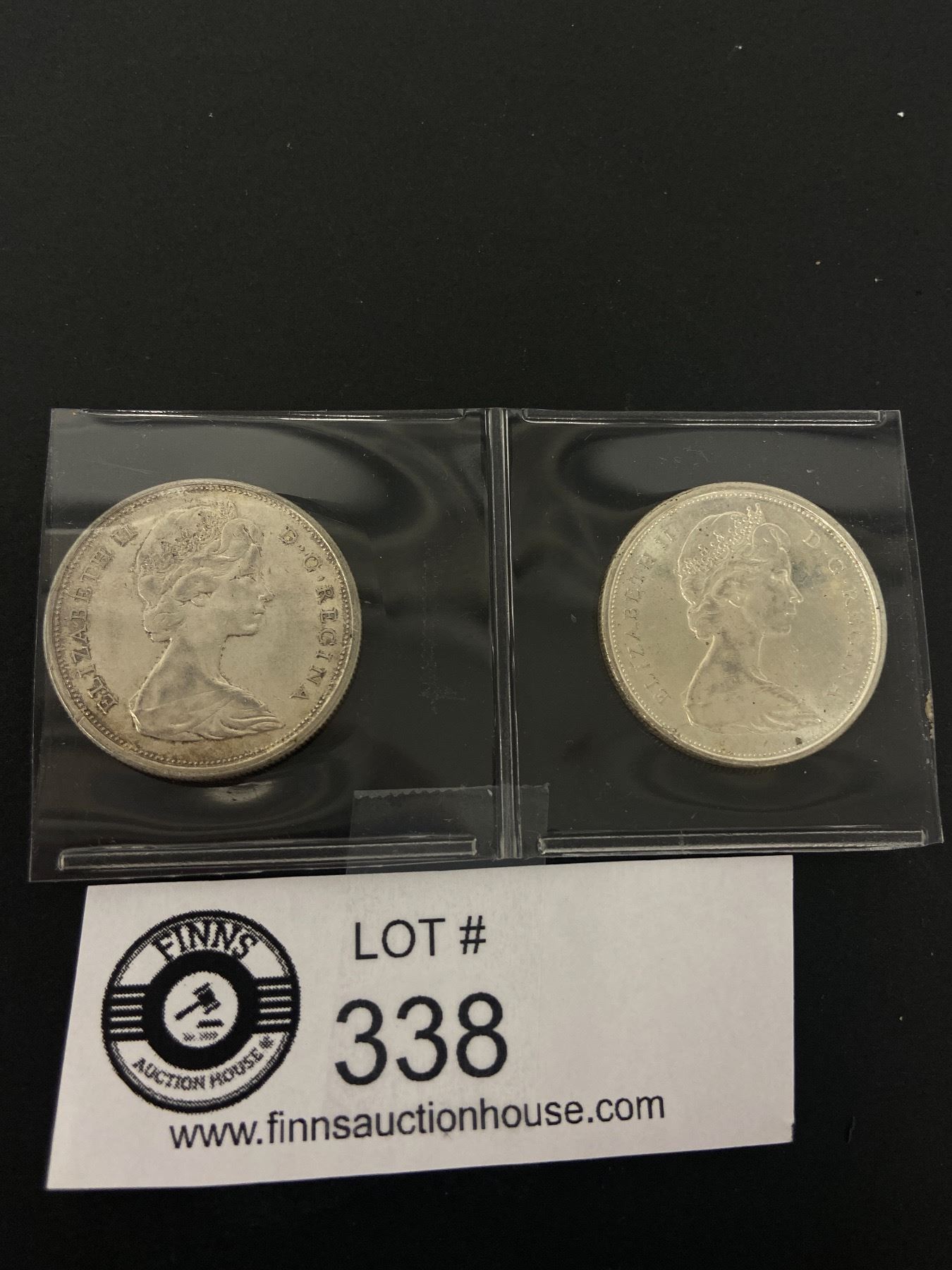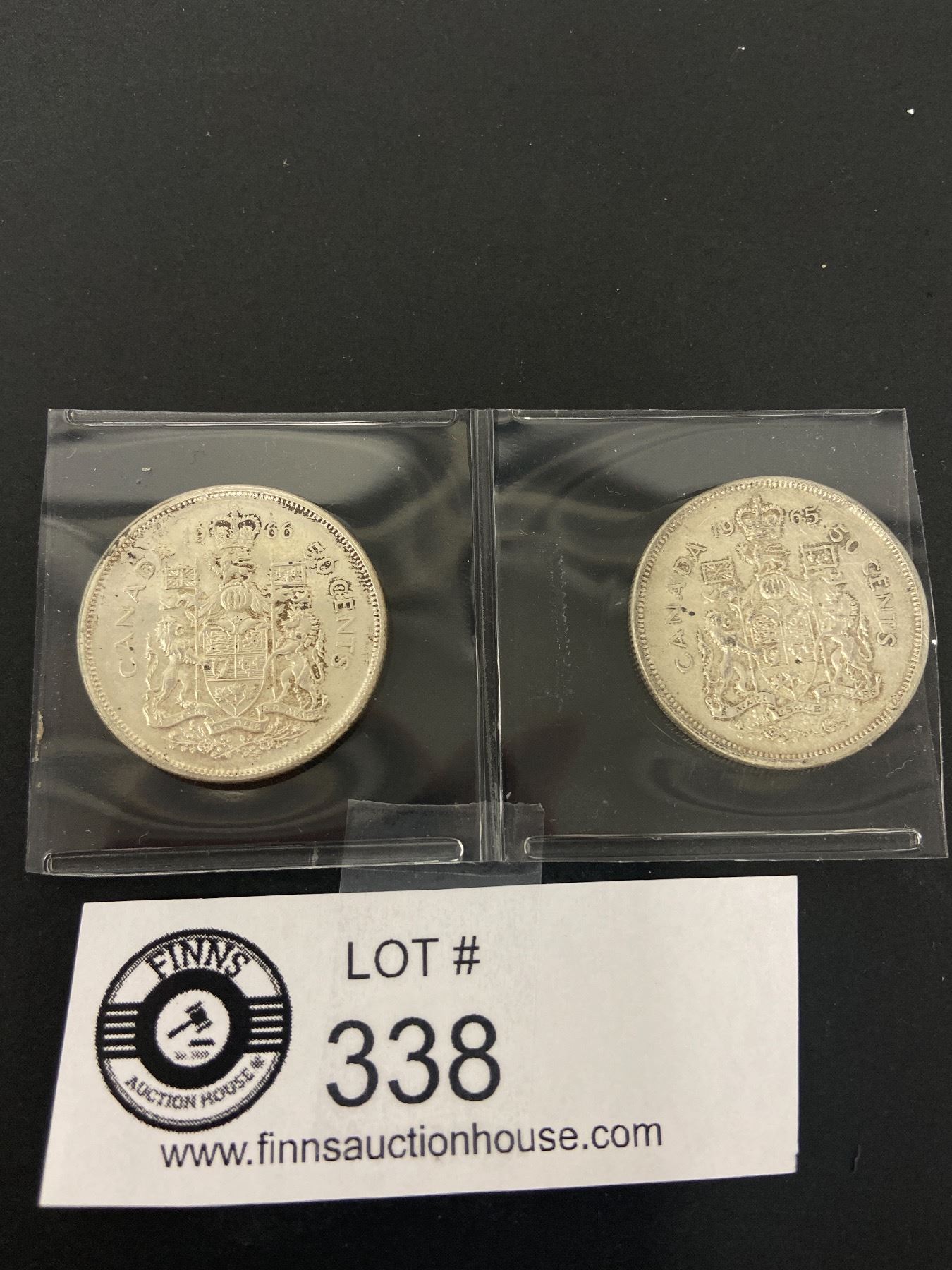 Lot of 2 Canada Silver 50 Cent Pieces 1965and 1966