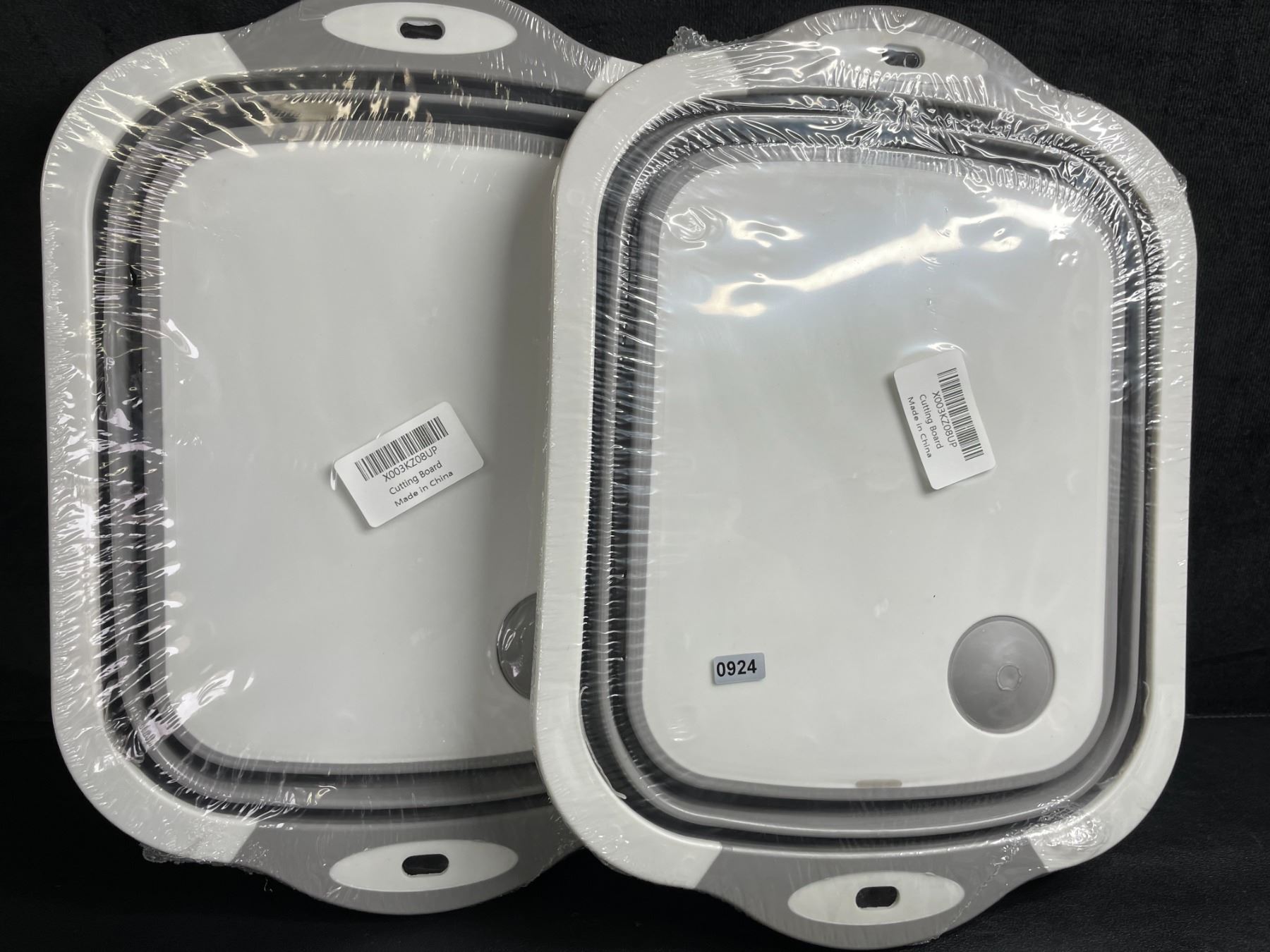 Lot of 2 Collapsible Multi-Function Cutting Boards with Built-In Strainer/Basket - New