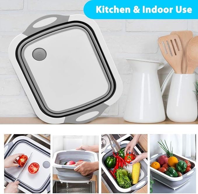 - Collapsible Cutting Board with Colander, Folding Dish Washing Tub, Food Grade Sink Storage Basket for Washing and Draining Foods, Vegetables, Fruits, Salad etc.