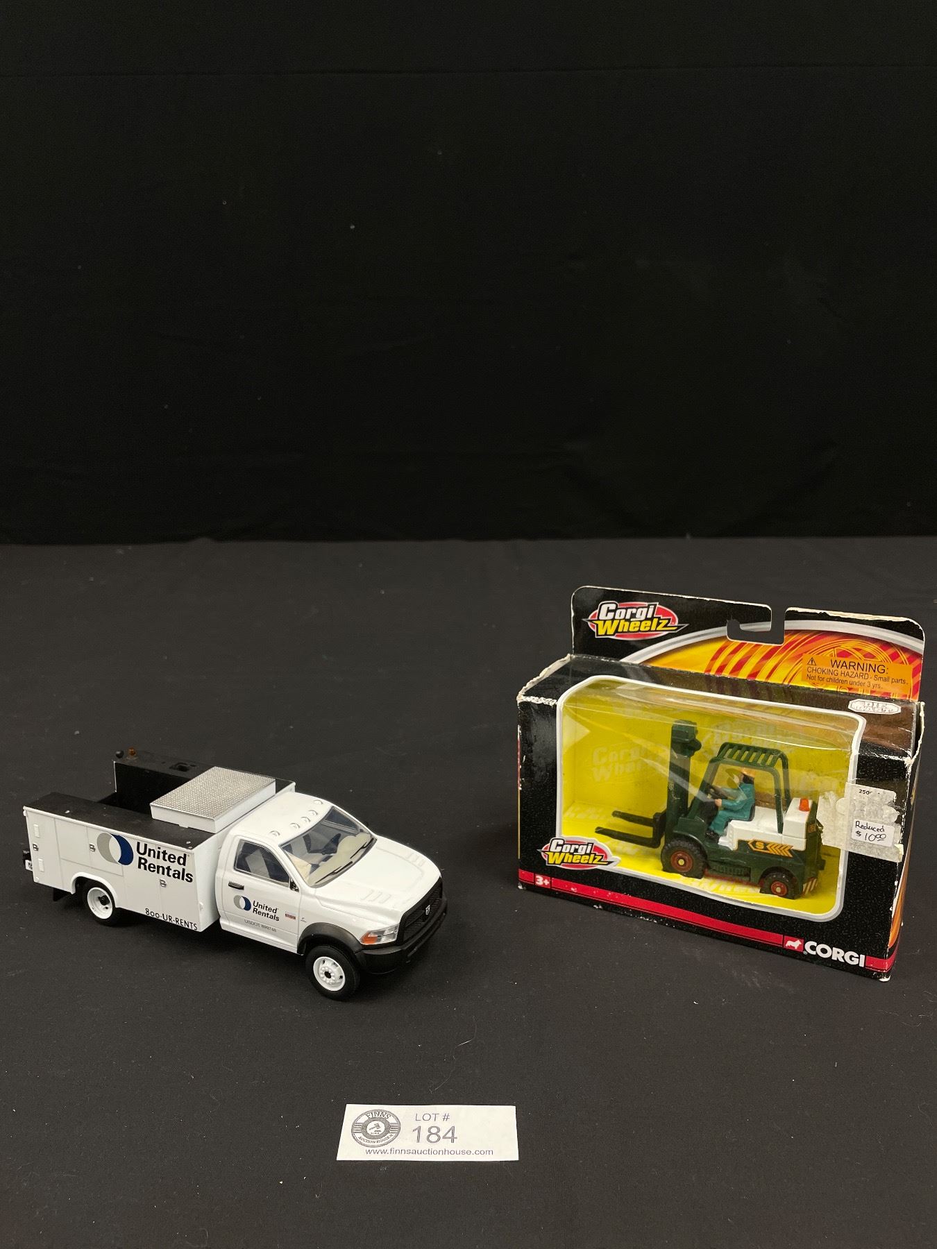 Lot of 2 Collectible Die Cast Cars - United Rentals Truck with Corgi Wheelz Eddie Stobart Fork Lift Truck - Original Box