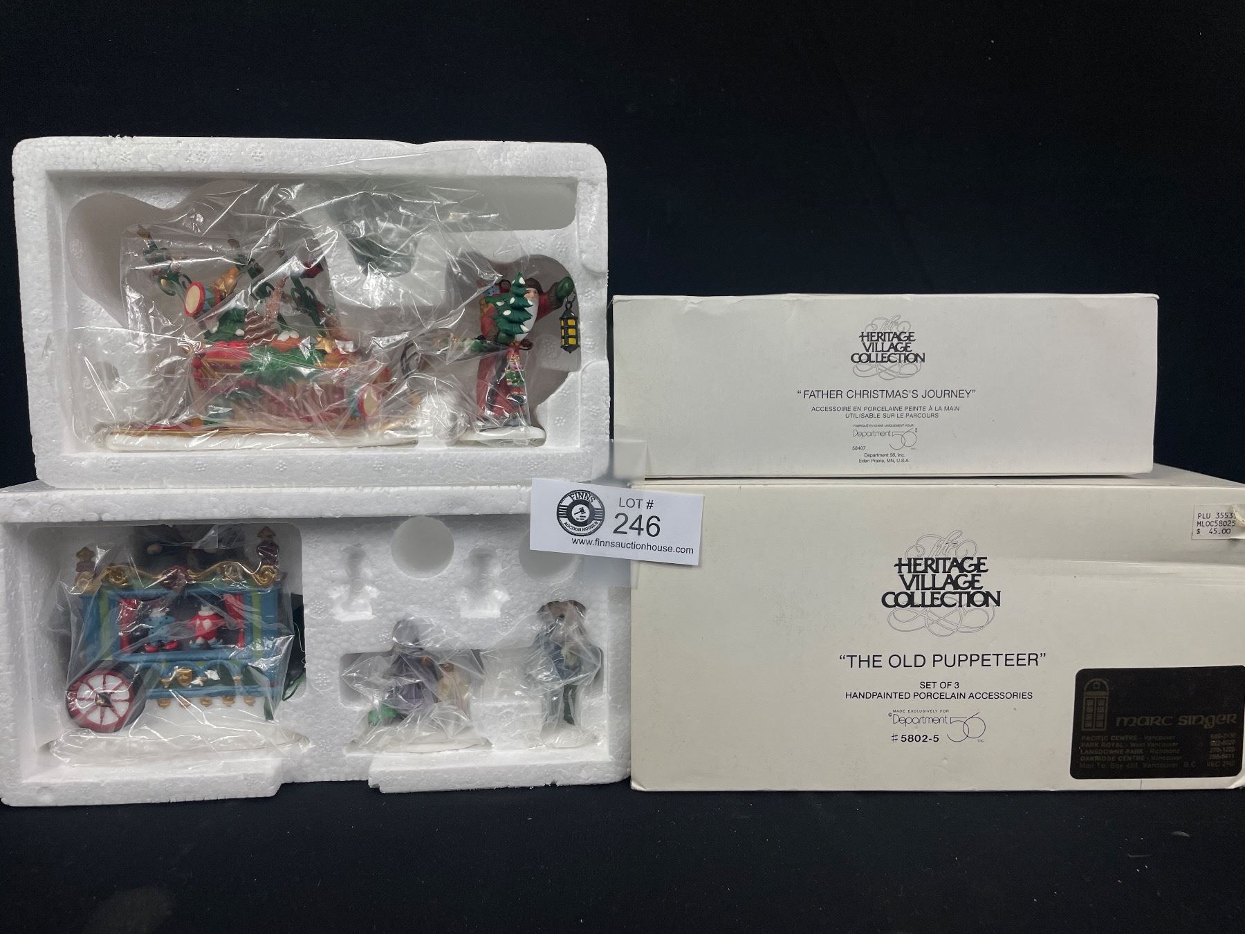 Lot of 2 Department 56 Christmas Village Pieces "Father Christmas's Journey" and " The Old Puppeteer"
