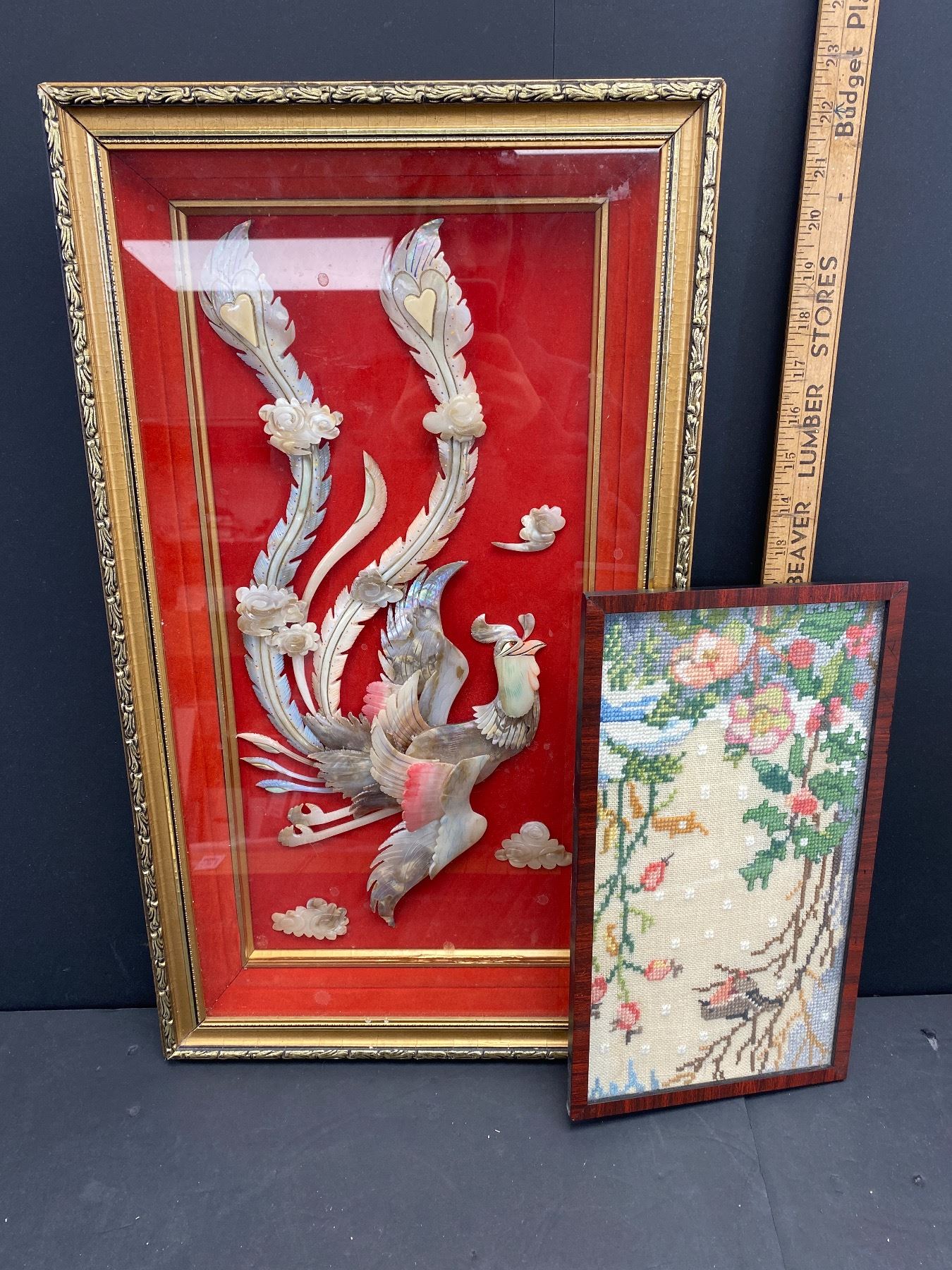 Lot of 2 Framed Art Works. 1 Needle Point and 1 3D Bird Largest Being 13" x 4"