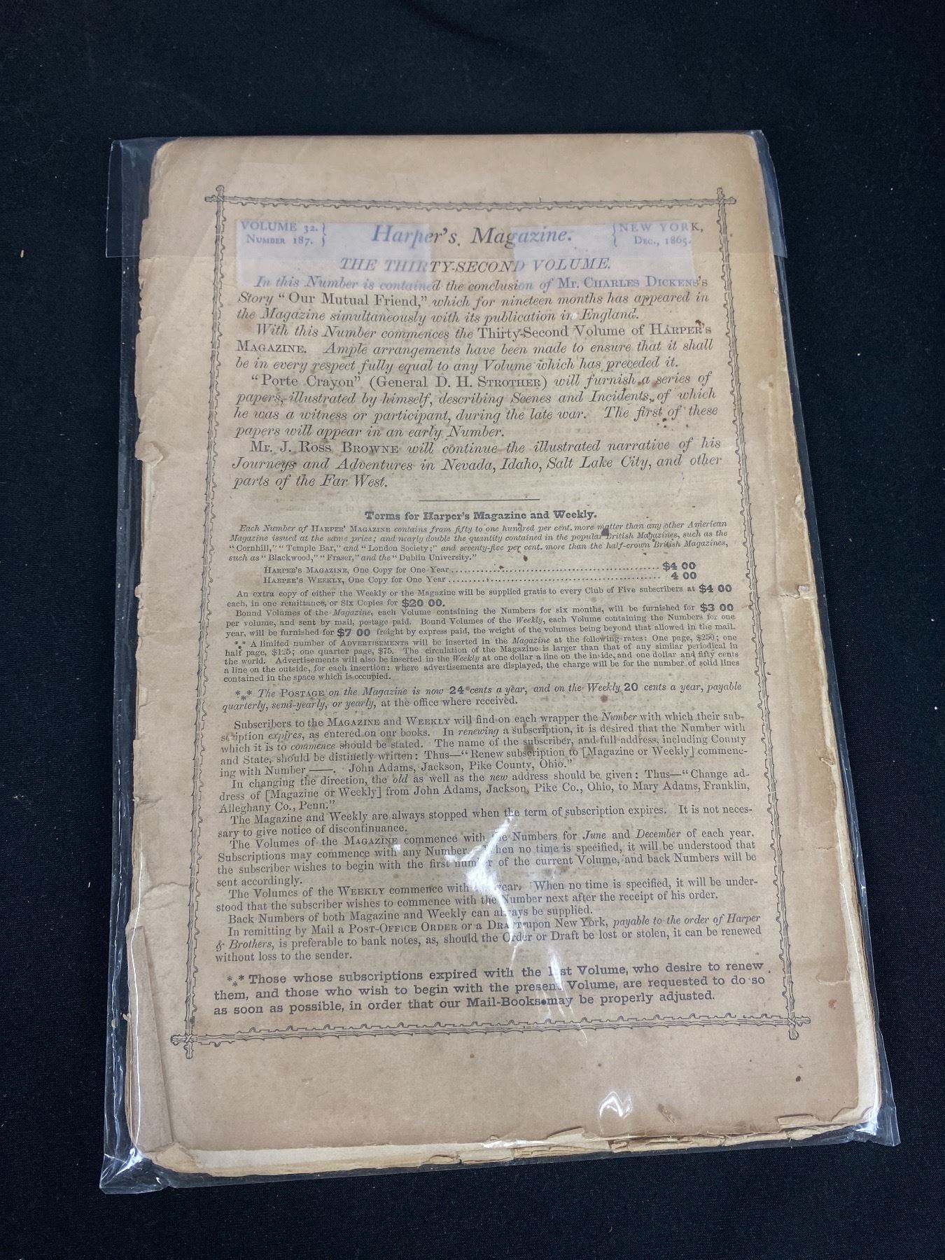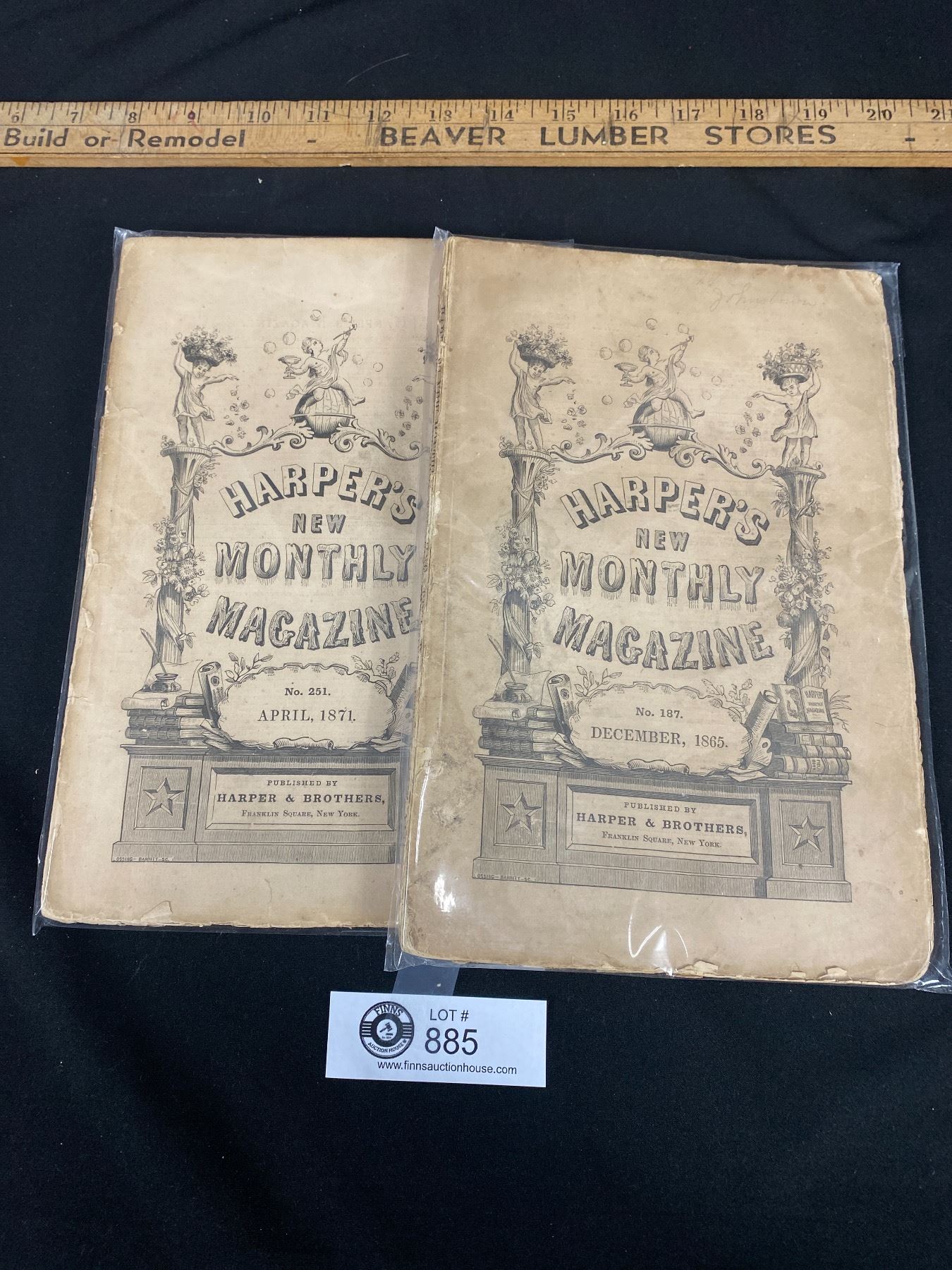 Lot of 2 Harpers New Monthly Magazines No. 187 December 1865 and No. 251 April 1871