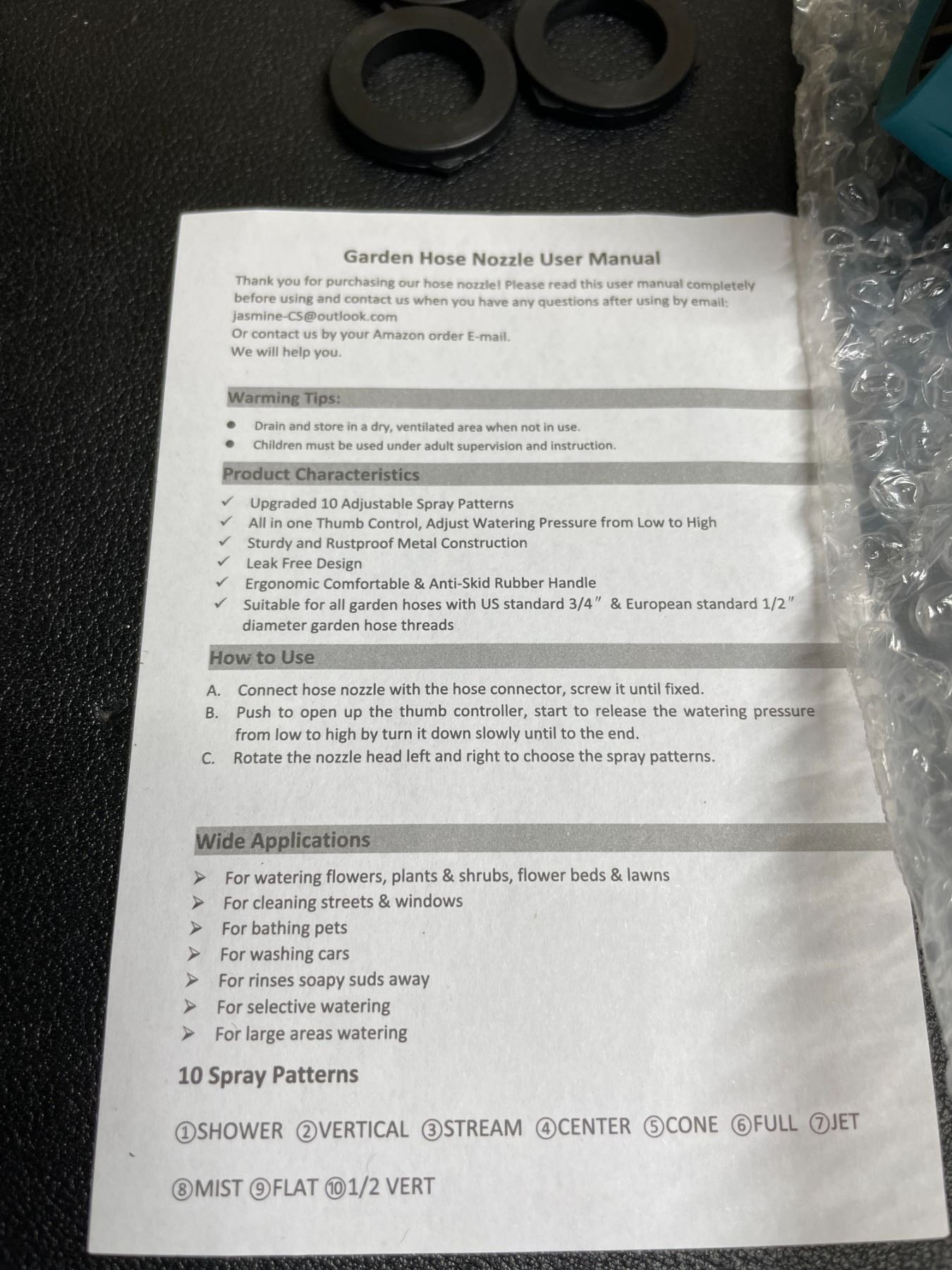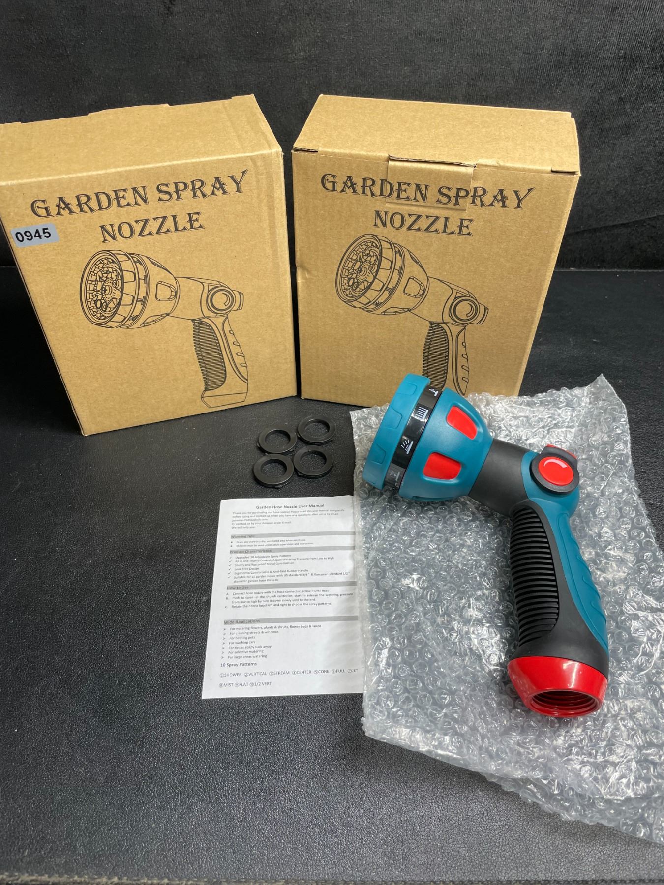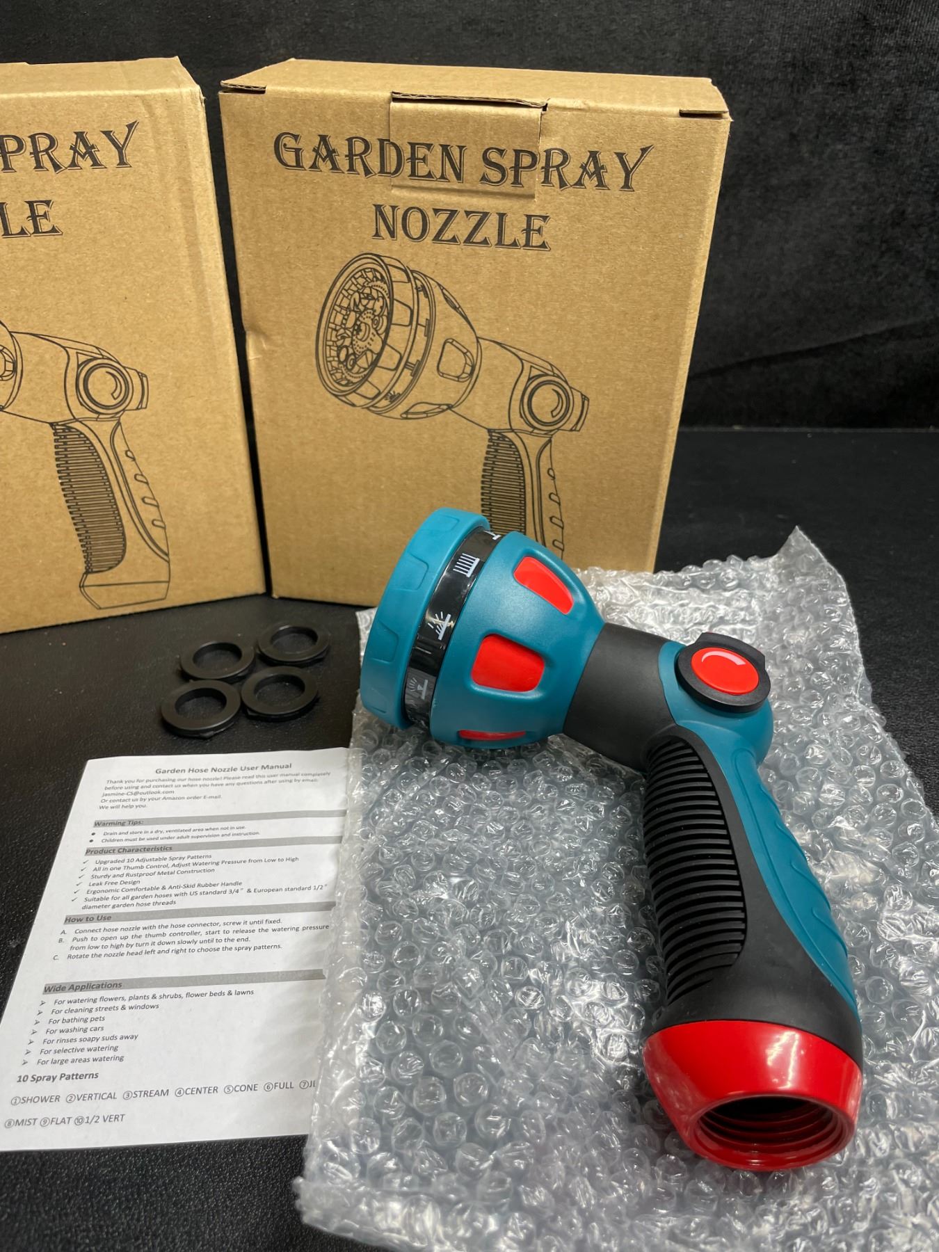 Lot of 2 Heavy-Duty Garden Hose Spray Nozzles - 10 Spray Patterns - New