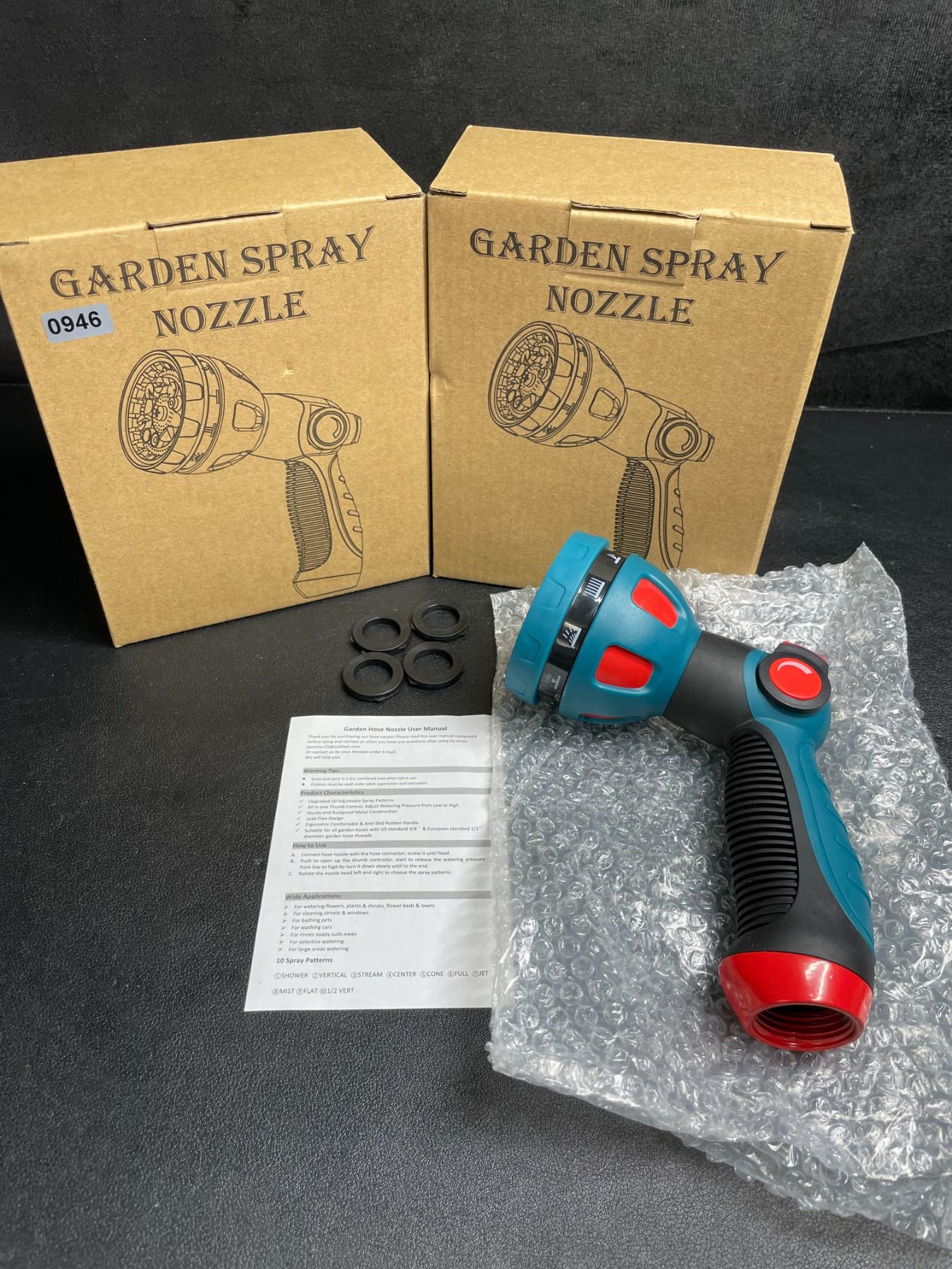 Lot of 2 Heavy-Duty Garden Hose Spray Nozzles - 10 Spray Patterns - New