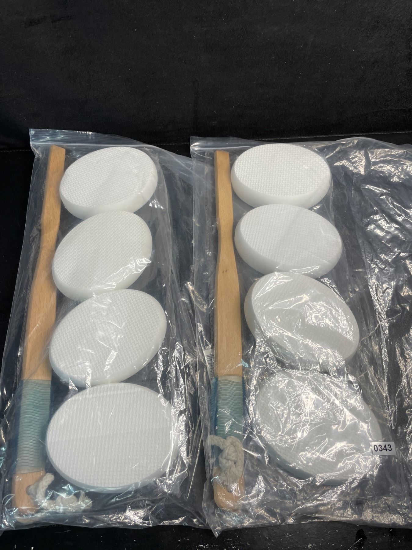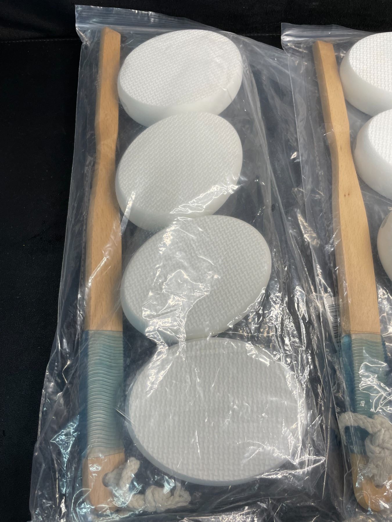 Lot of 2 Long-Handle Loofahs/Bath Sponge Sets (4 Sponge Pads + Handle Per Pack) - New