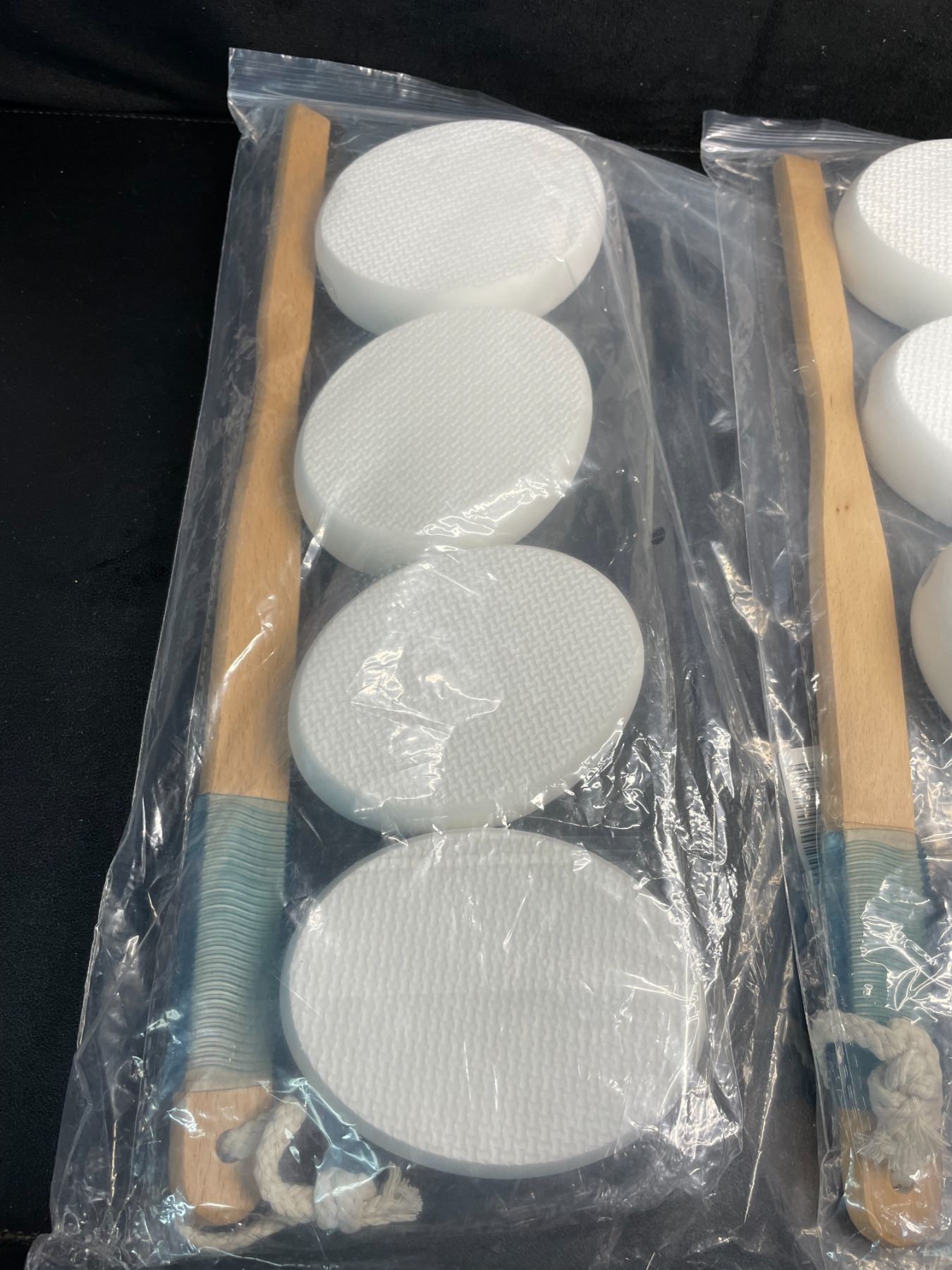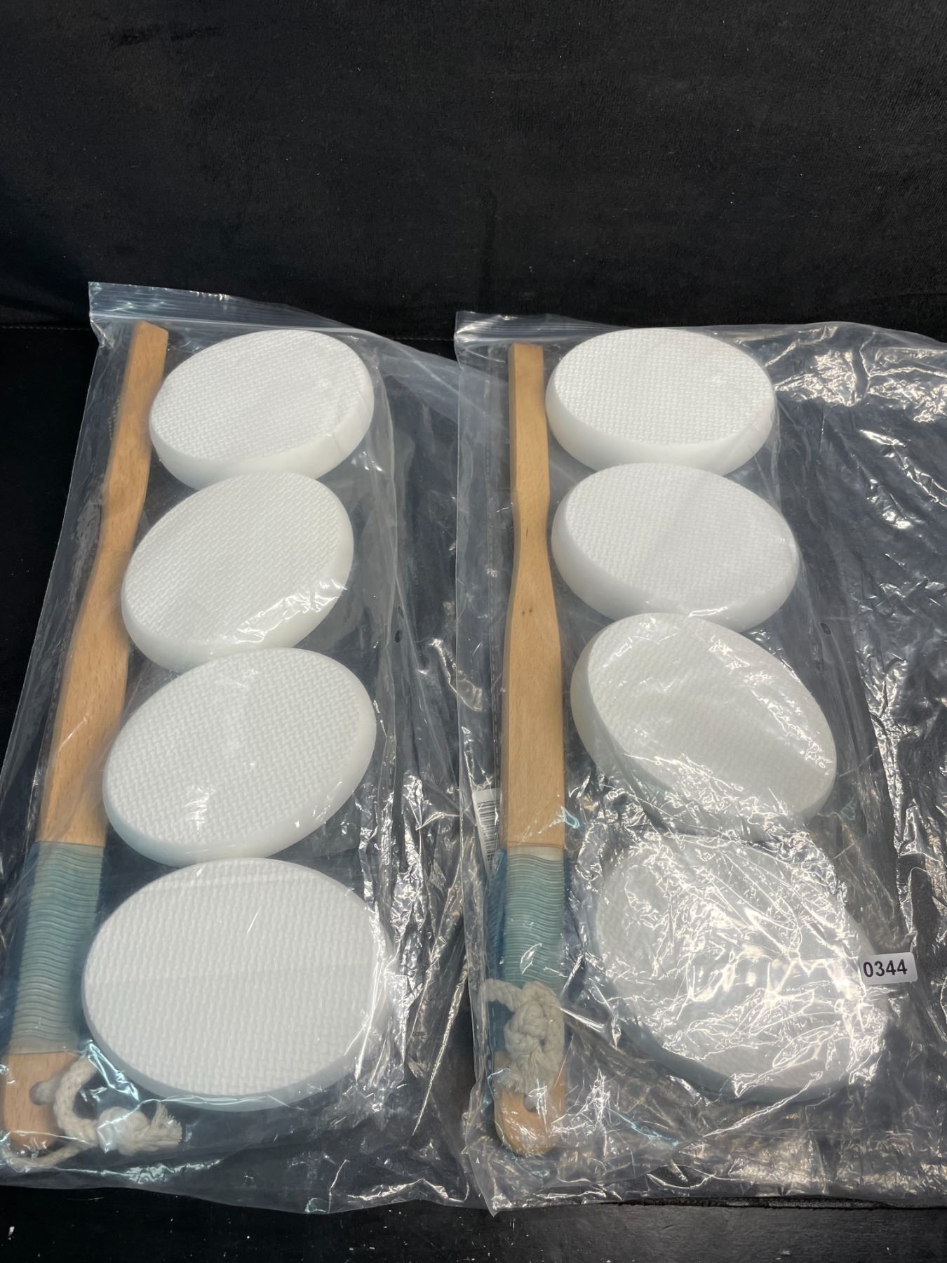 Lot of 2 Long-Handle Loofahs/Bath Sponge Sets (4 Sponge Pads + Handle Per Pack) - New