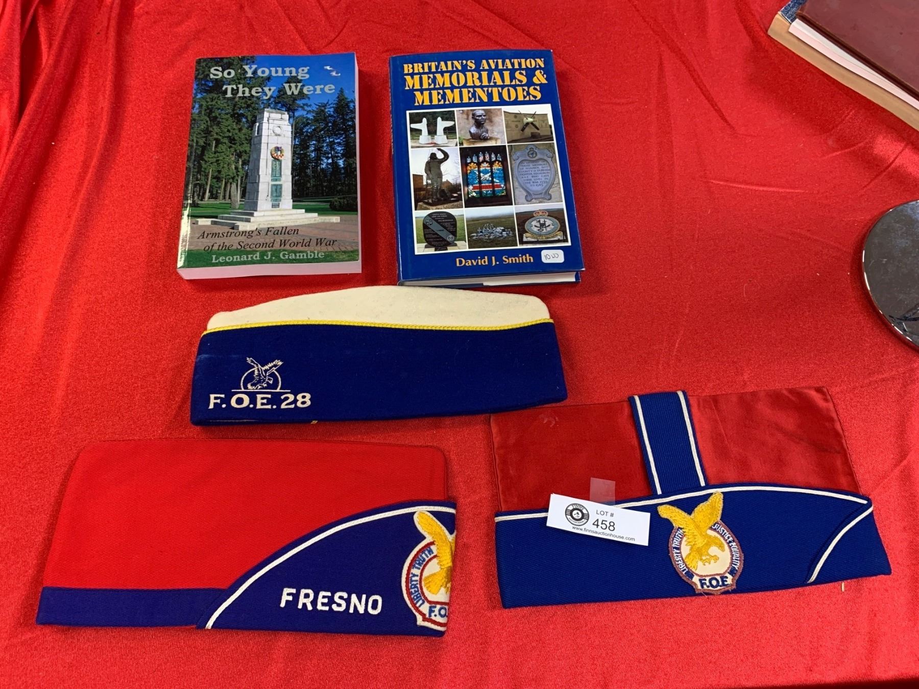 Lot of 2 Memorial Books on the War + 3 Fratenity Hats