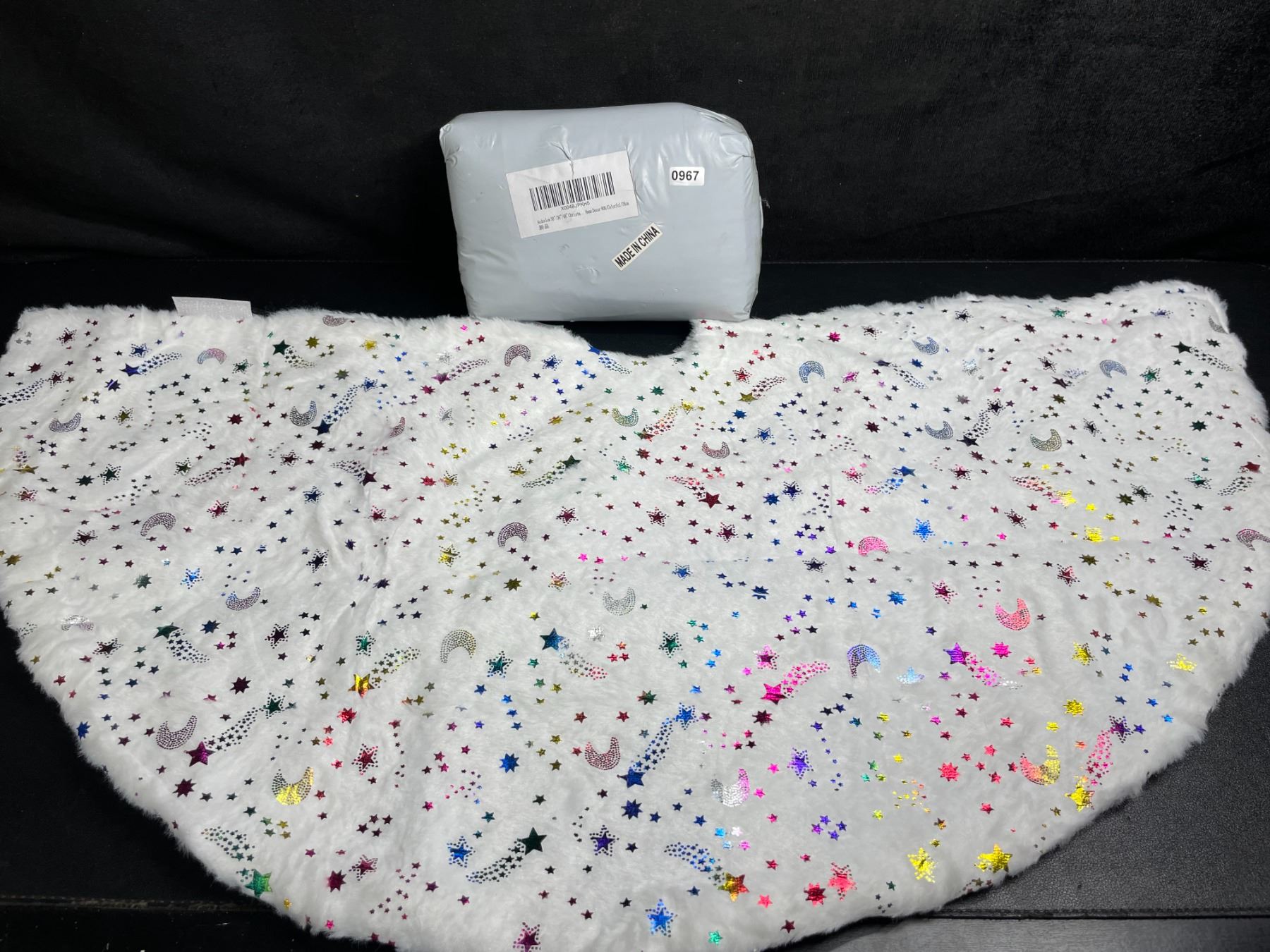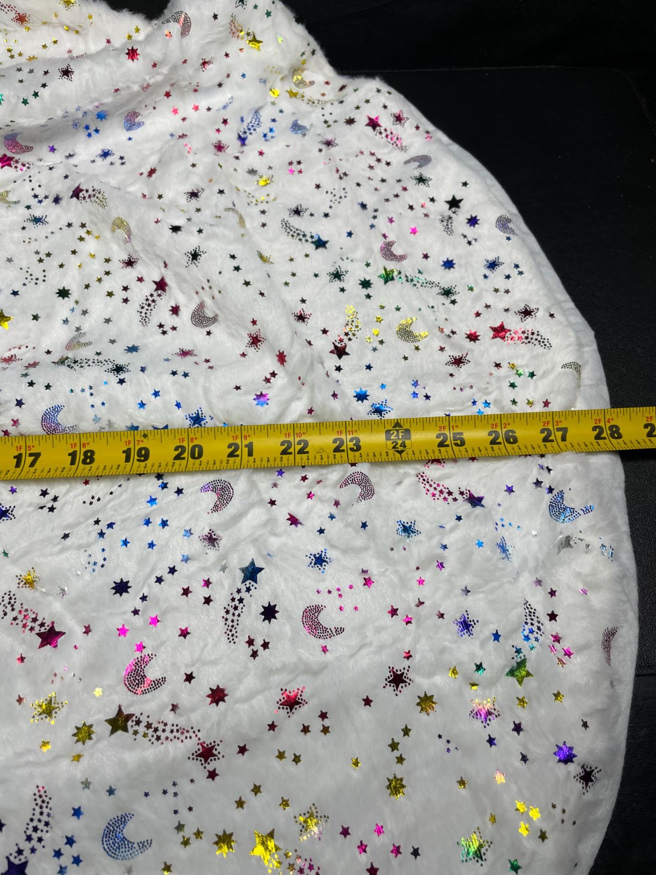 Lot of 2 Plush Faux Fur Christmas Tree Skirts (White) With Colorful Metallic Moons/Stars - New!