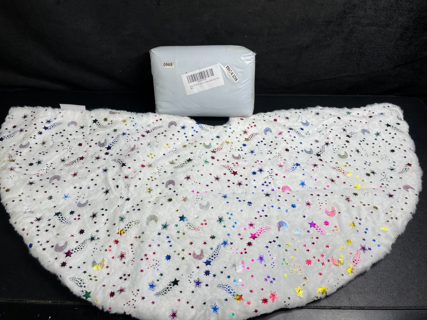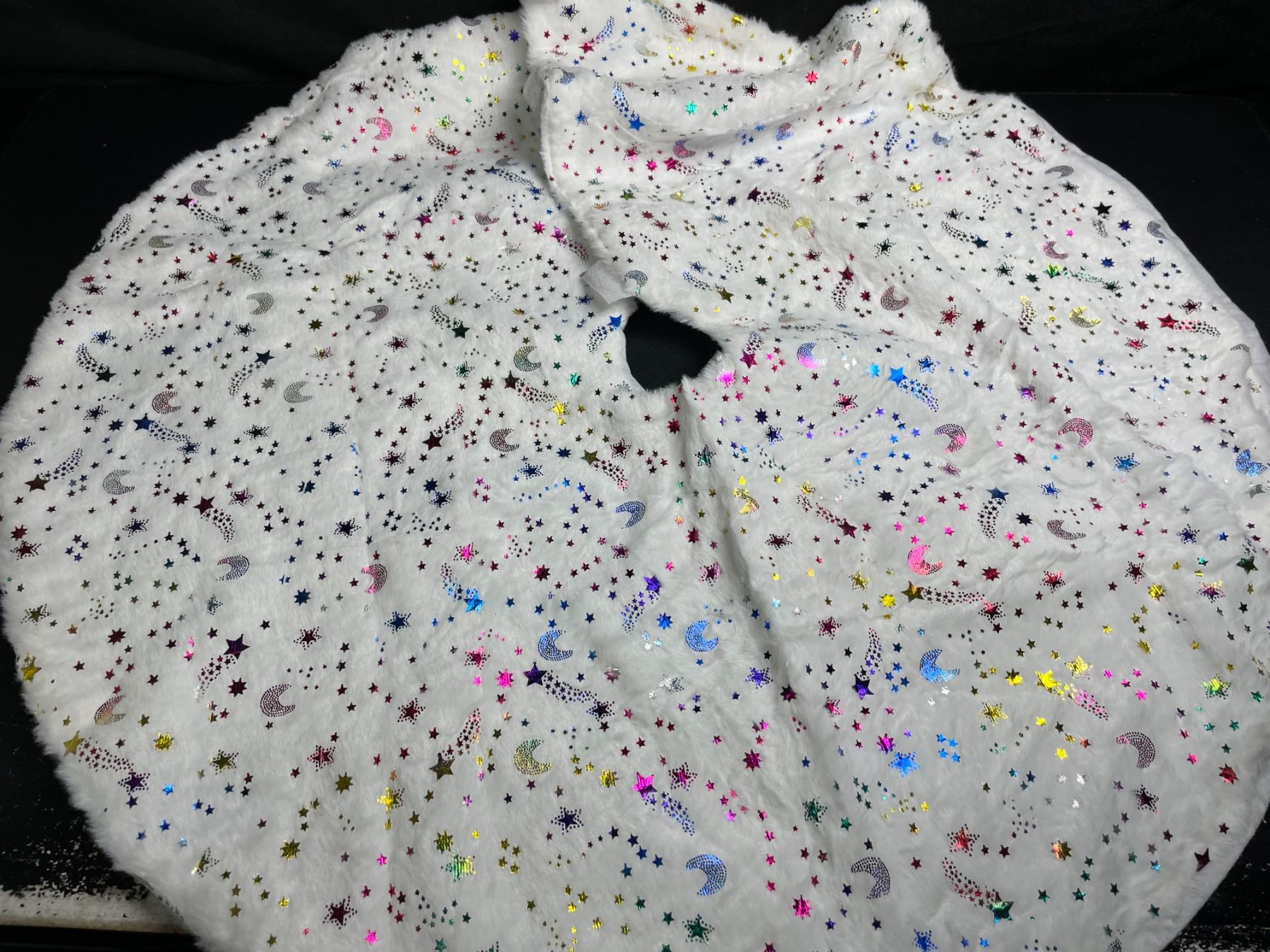 - acdoslow 30" christmas tree skirt, plush faux fur xmas tree skirt with gold/silver/colorful star moon sequins white tree mat for christmas holiday party winter home decor; colorful/78cm