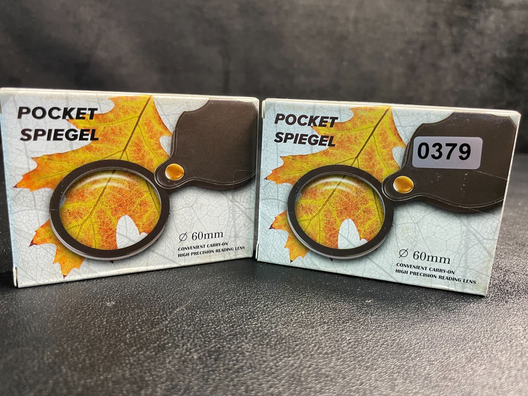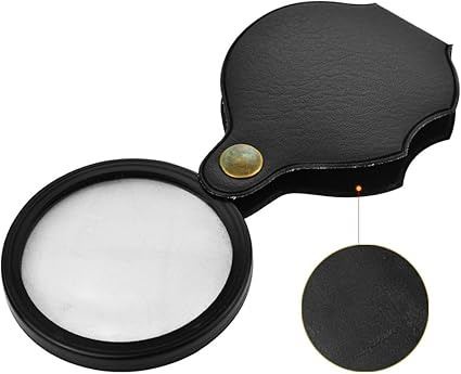 - 10X Mini Pocket Magnifying Glass Folding Pocket Magnifier Loupe with Rotating Protective Holster Leather Pouch for Reading,Science Class,Hobby (Black), 60mm/2.4"