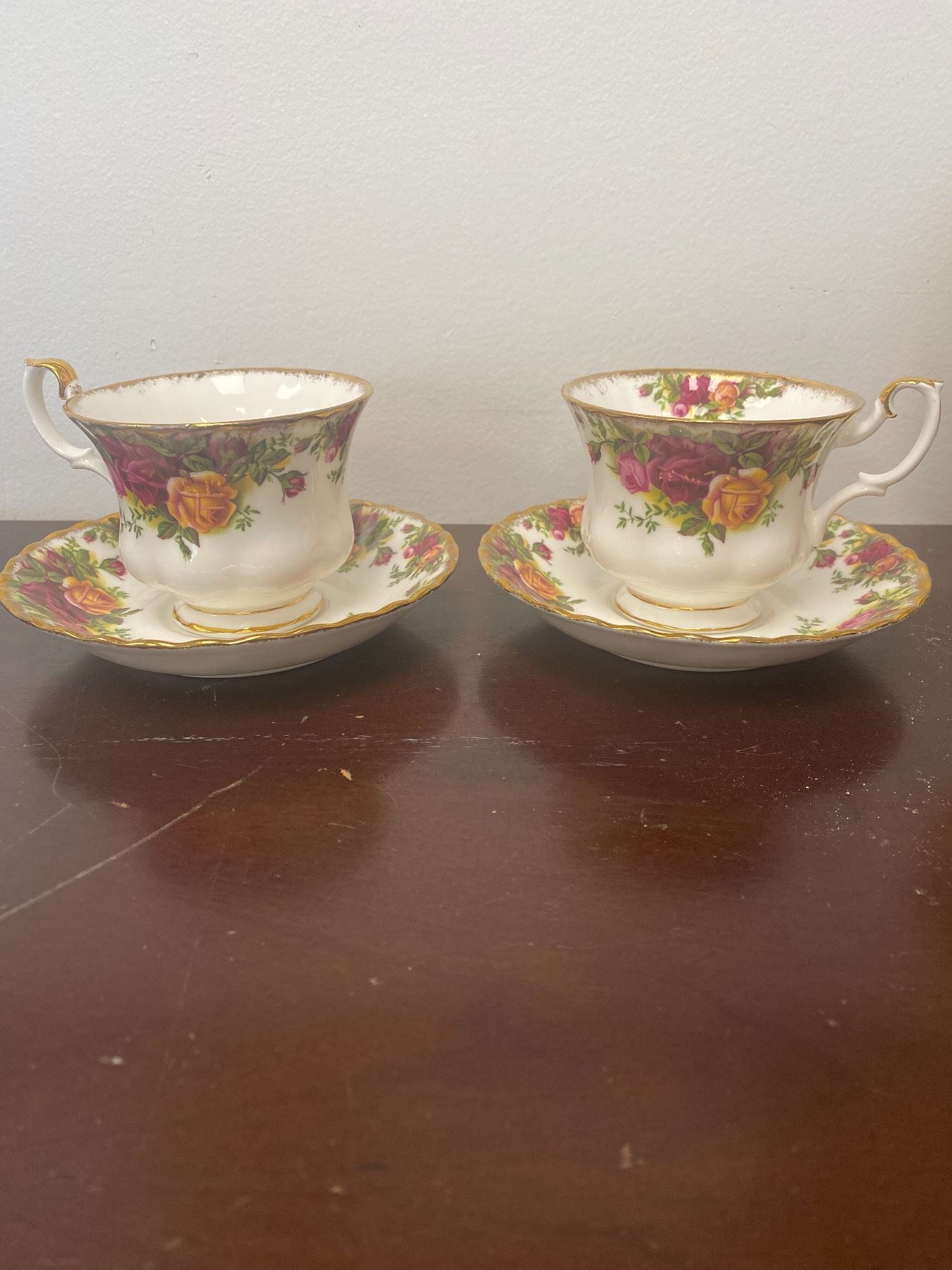 Lot of 2 Royal Albert Bone China Old Country Roses Tea Cups and Saucers. In Excellent condition, no chips or cracks. Cabinet Condition