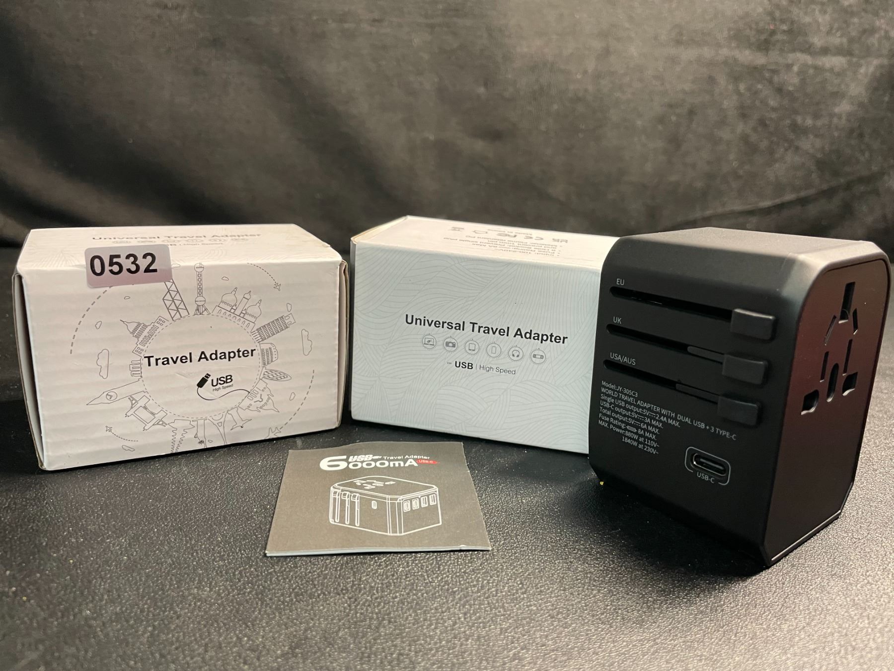 - 2 Universal Travel Adapters - AUS/EU/US/UK Compatible with x 3 USBC and x2 USBA Ports - New