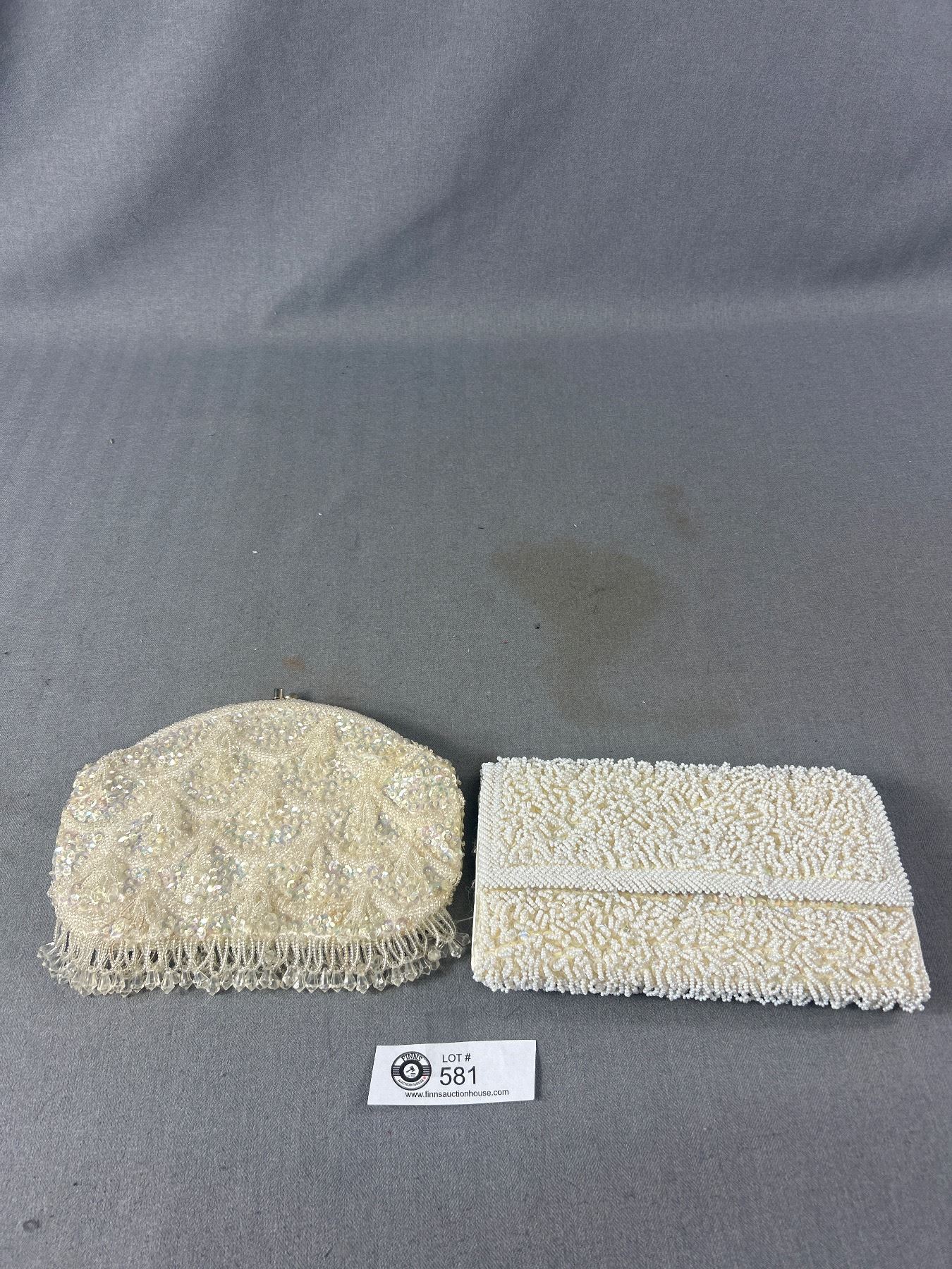 Lot of 2 Vintage Evening Purses Clutch Purses. Both White Beaded In Great Shape, Very Clean