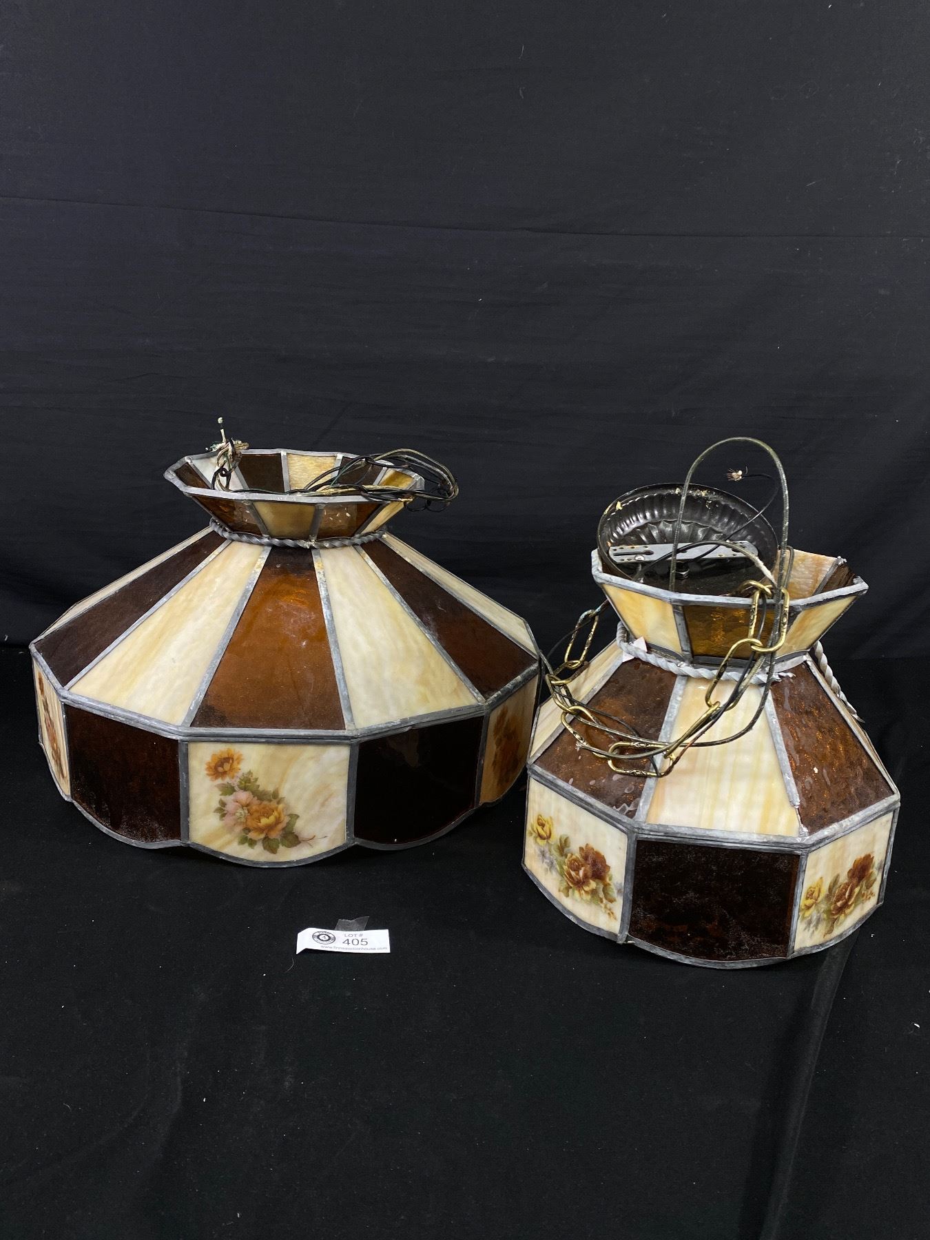 Lot of 2 Vintage Hanging Light Covers.Stained Glass Style