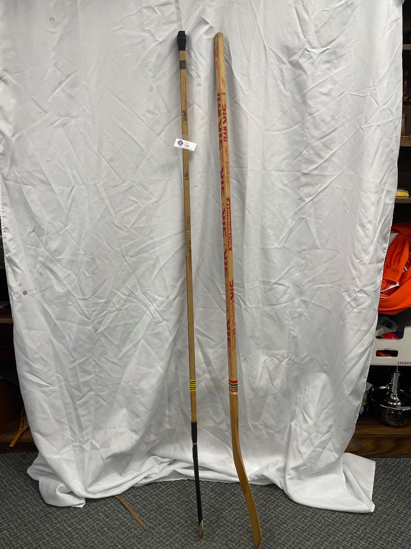 Lot of 2 Vintage Hockey Sticks. CCM Comet and Victoriaville with Unknown Signatures