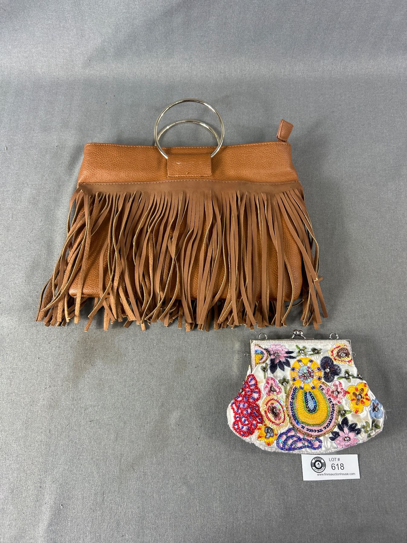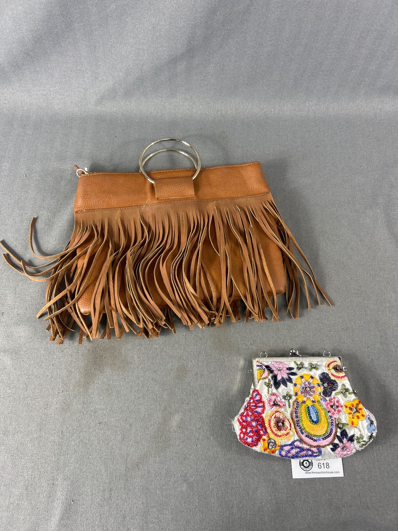 Lot of 2 Vintage Purses/Bags. Leather Ever New Tassel Purse and Seduction Beaded Clamshell Bag