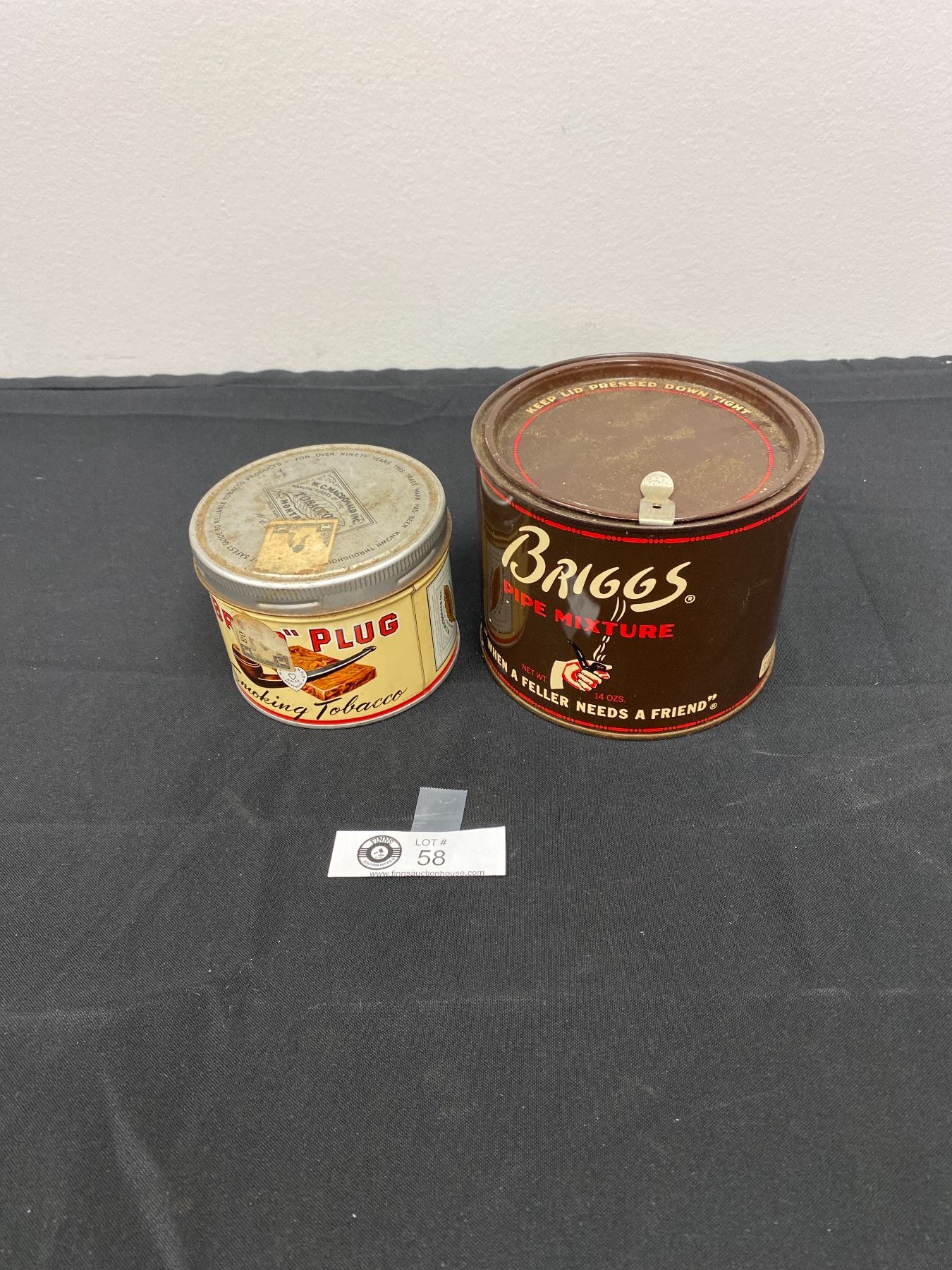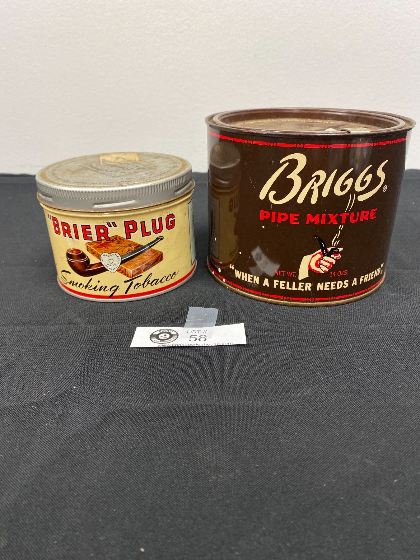 Lot of 2 Vintage Tobacco Tins, Briggs Pipe Mixture and Brier Smoking Tobacco