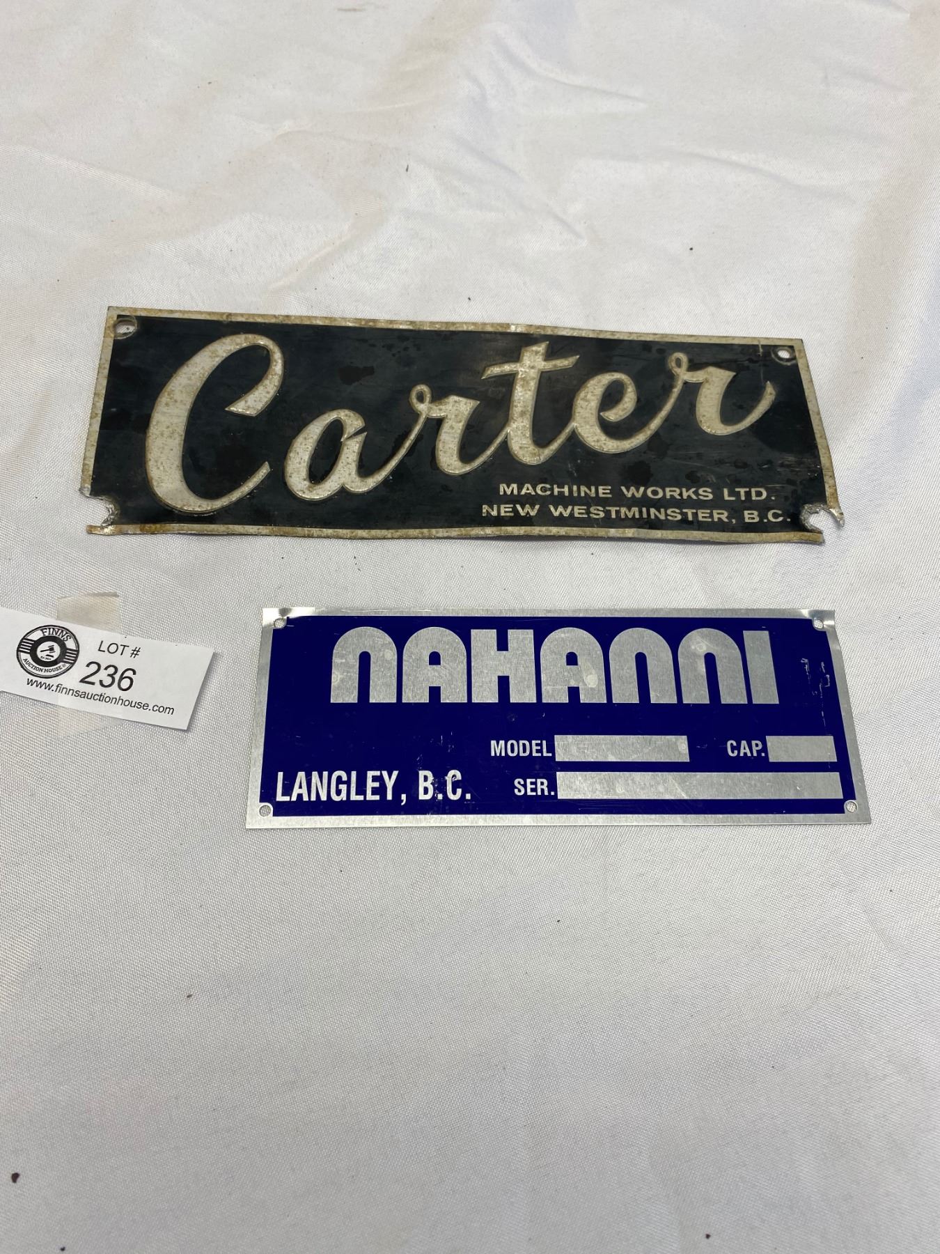 Lot of 2 Vintage Truck Badges Carter and Nahani