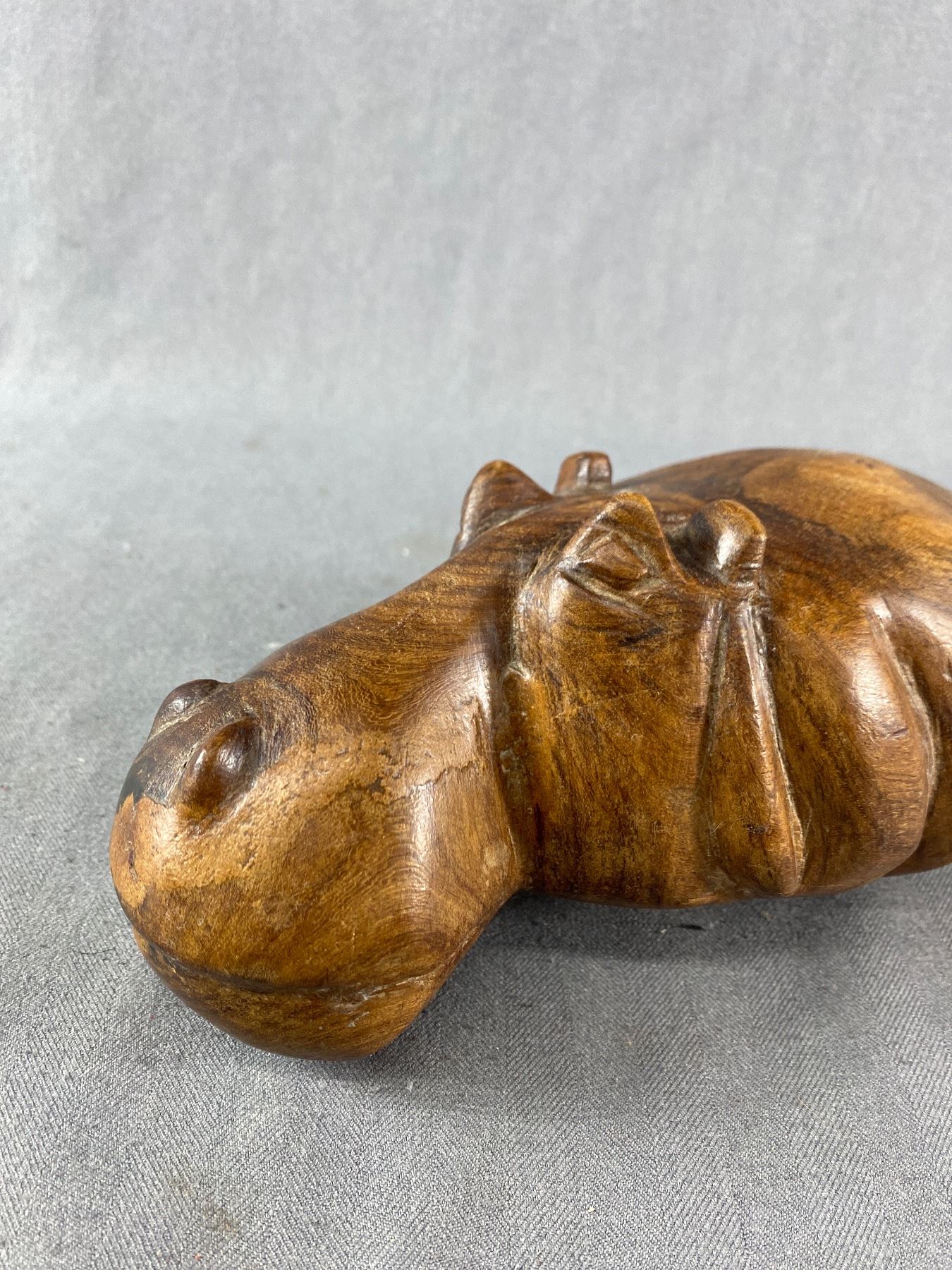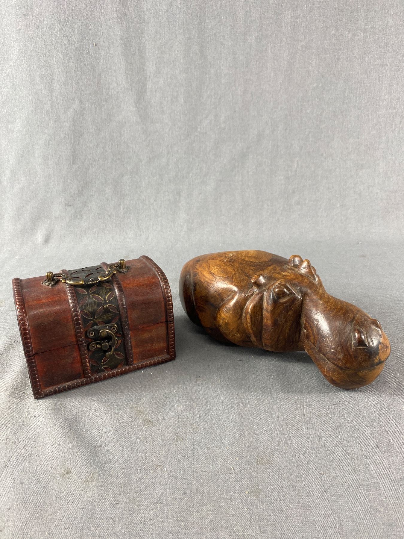 Lot of 2 Vintage Wooden Décor Pieces. A Hippo and a Wooden Chest in Great Condition