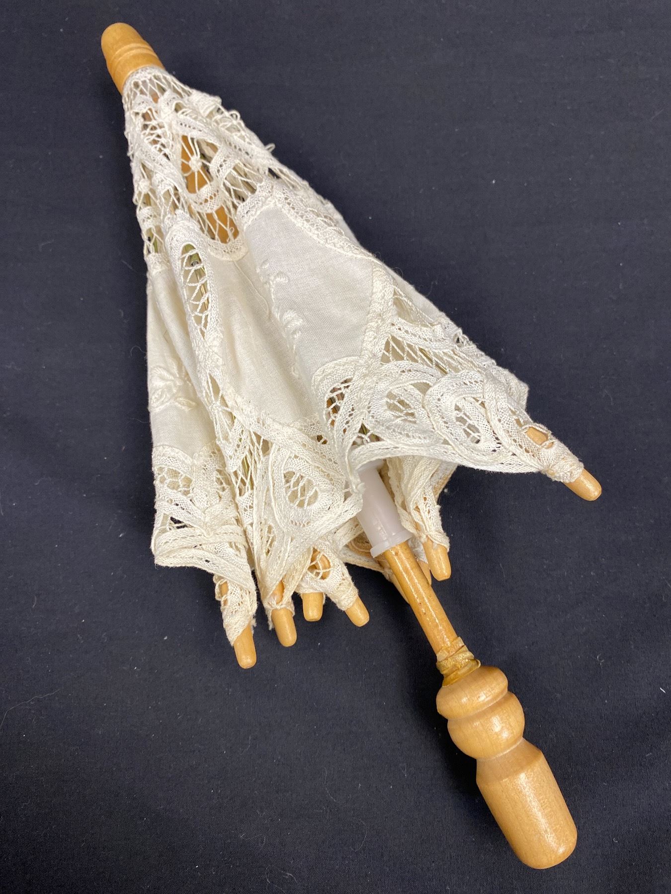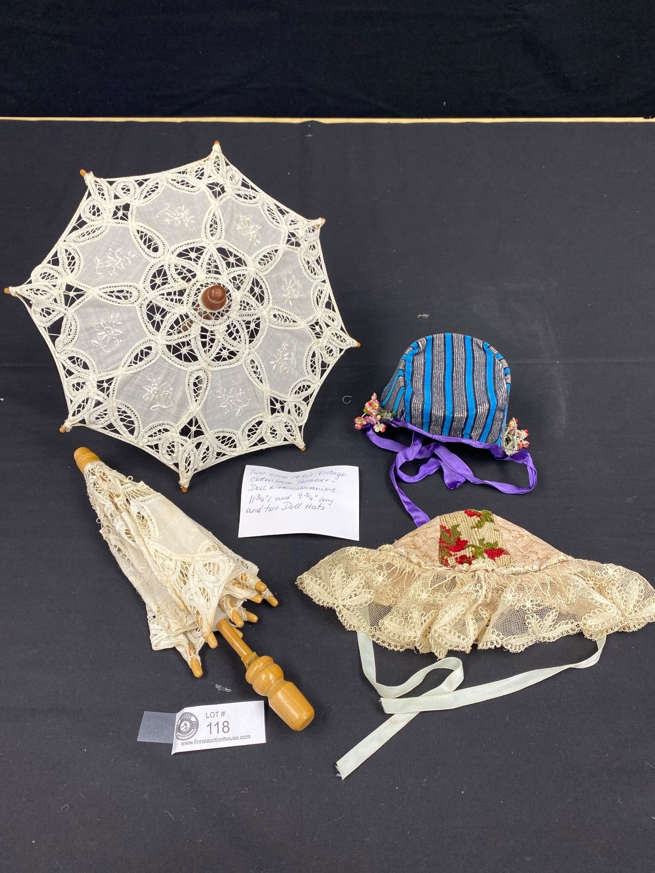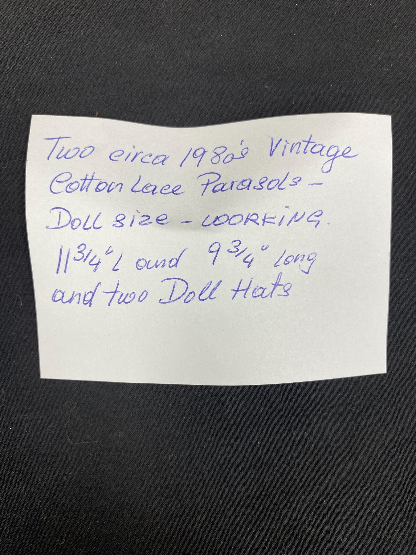 Lot of 2 Working Circa 1980s Vintage Doll Size Parasols with Two Doll Hats