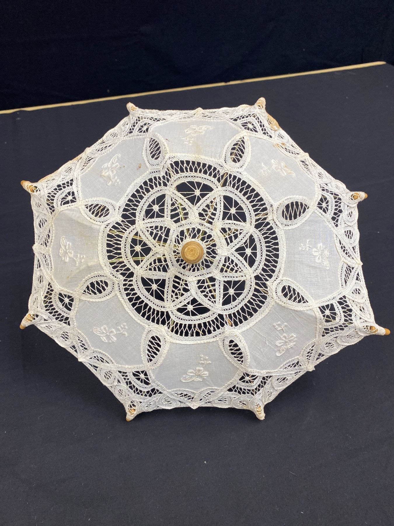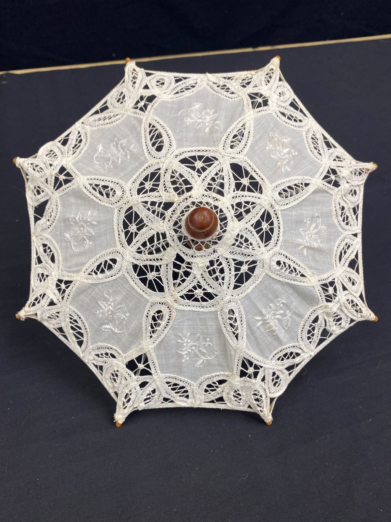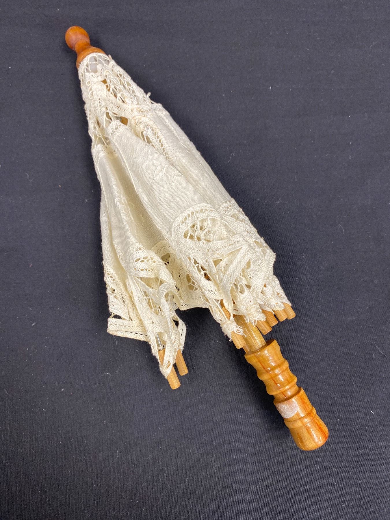 Lot of 2 Working Circa 1980s Vintage Doll Size Parasols with Two Doll Hats
