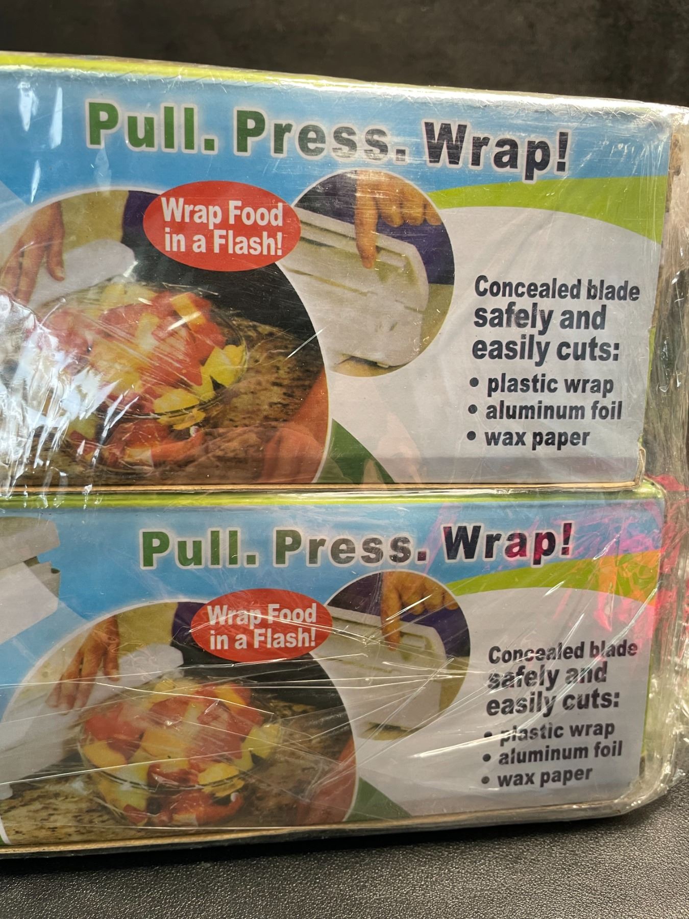 Lot of 2 Wraptastic Easy-To-Use Food Wrap Dispensers - Just Pull, Press, Cut & Wrap - New