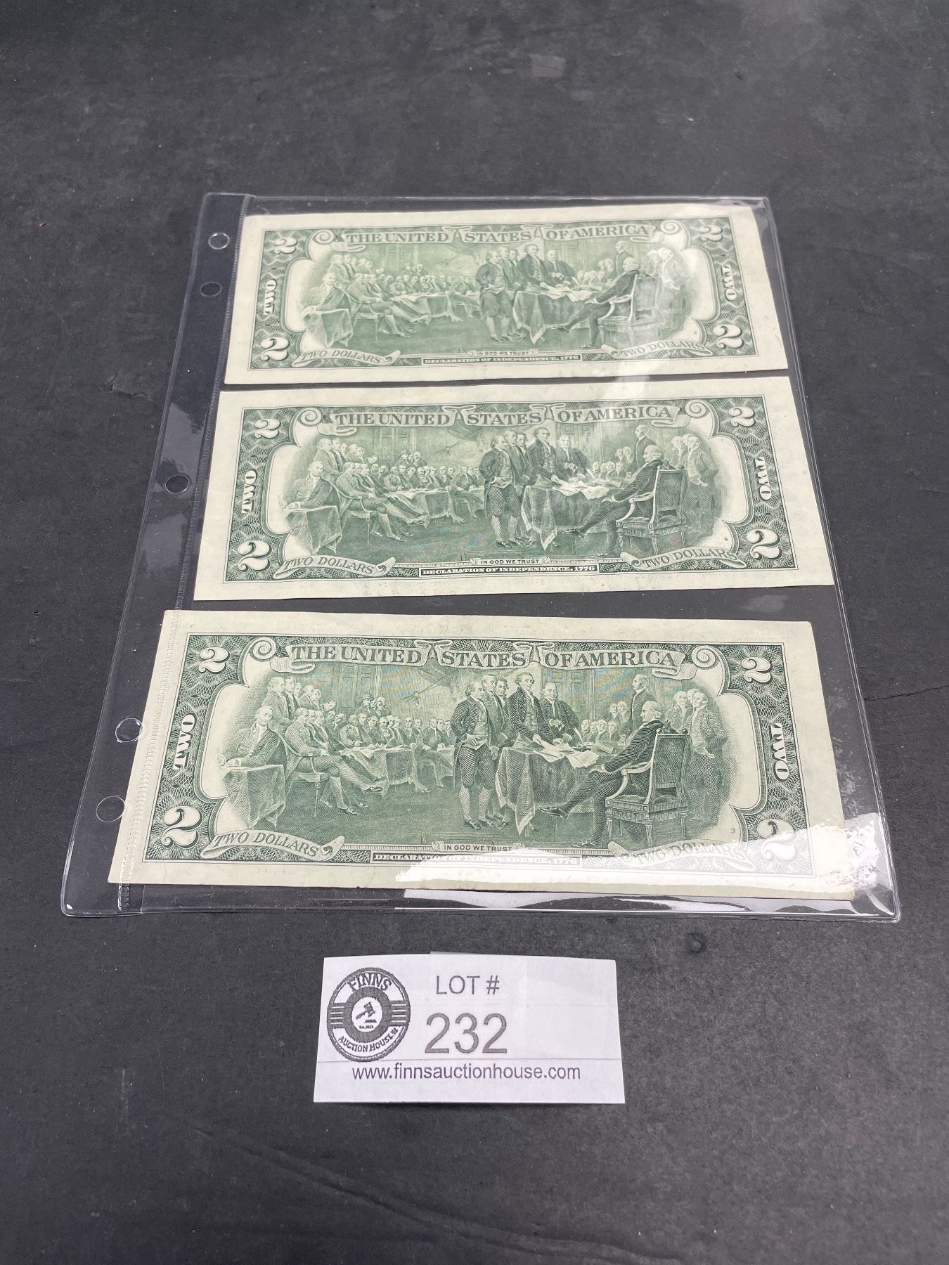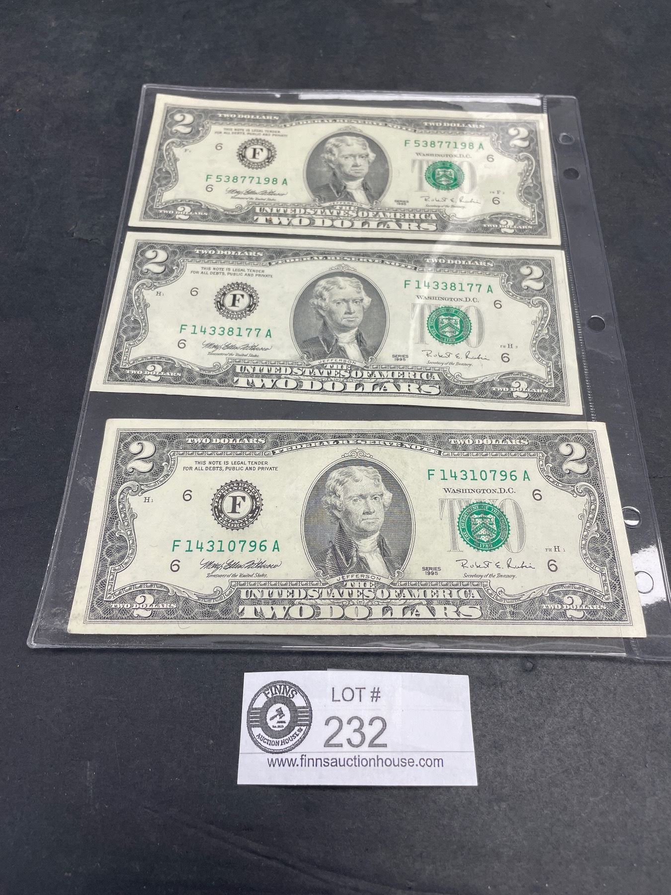 Lot of 3 1995 US $2 Bills V.Crisp Condition