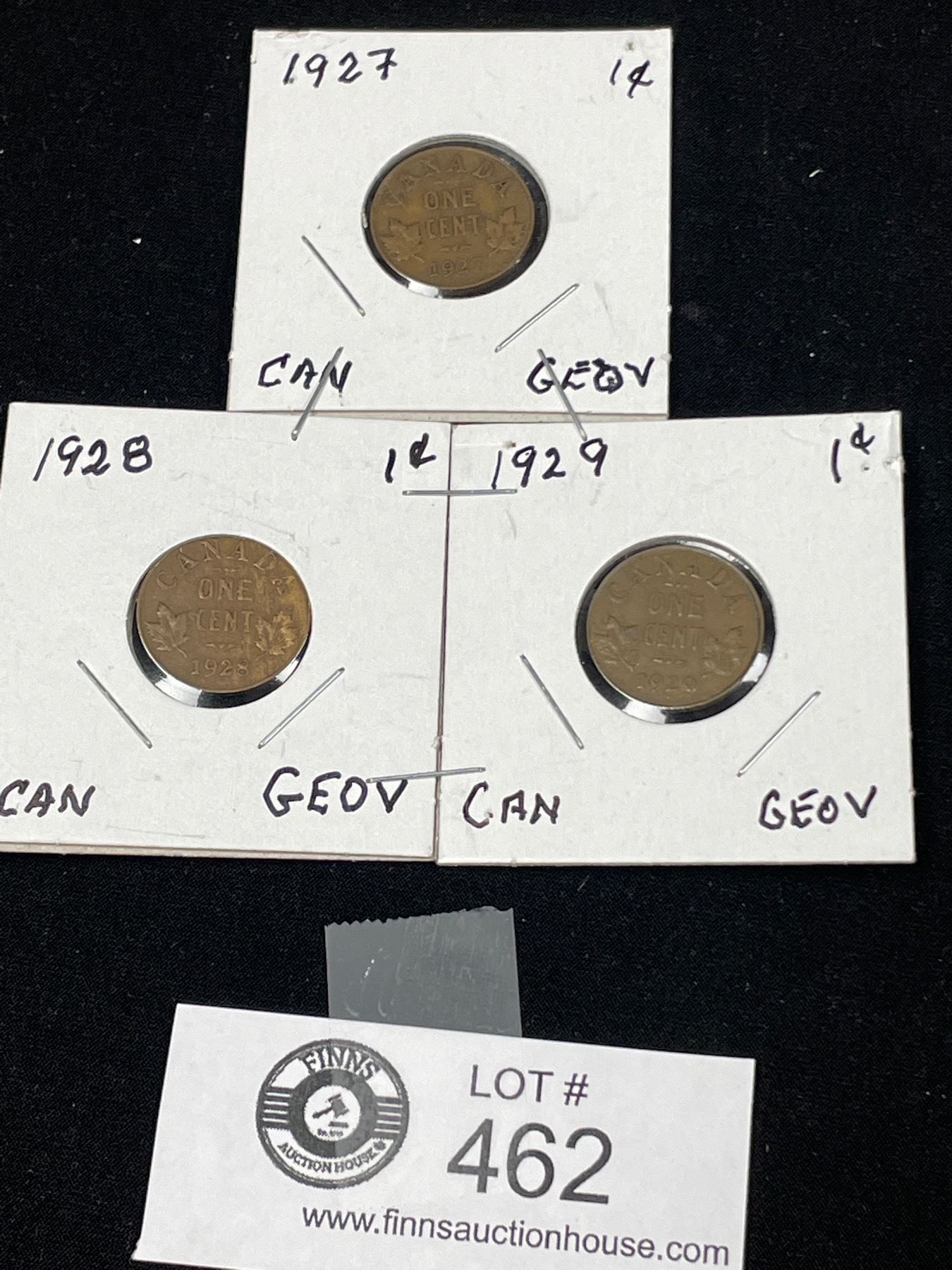Lot of 3 Canadian Pennies 1927,1928 and 1929