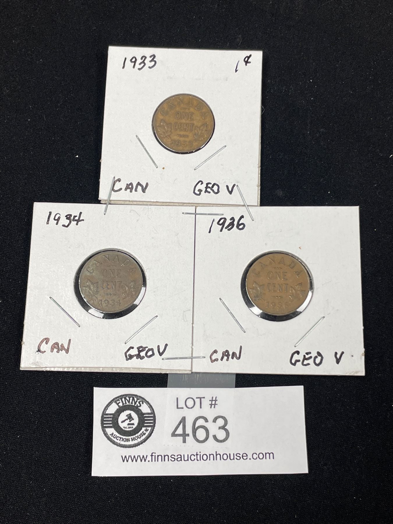 Lot of 3 Canadian Pennies 1933,1934 and 1936