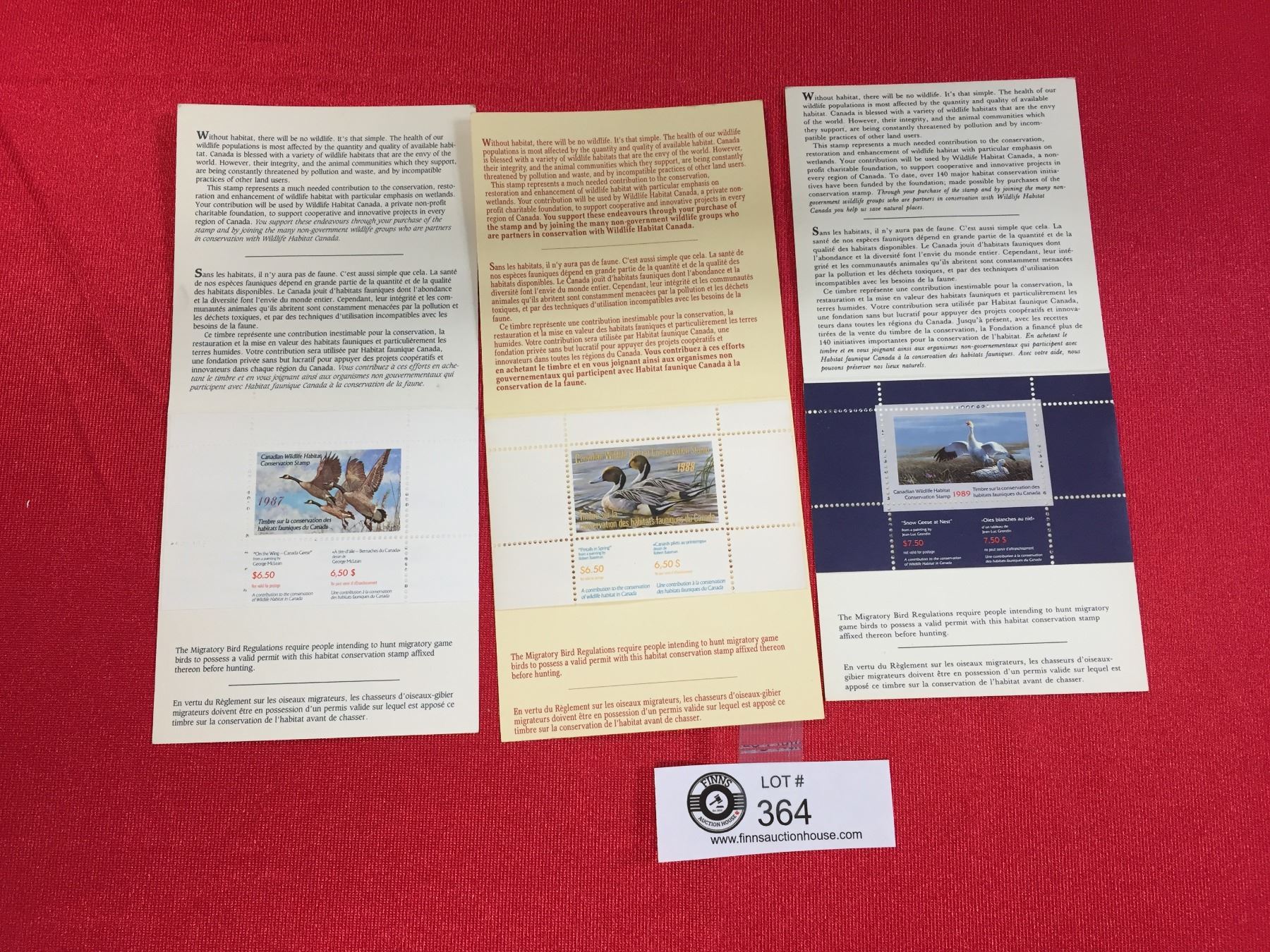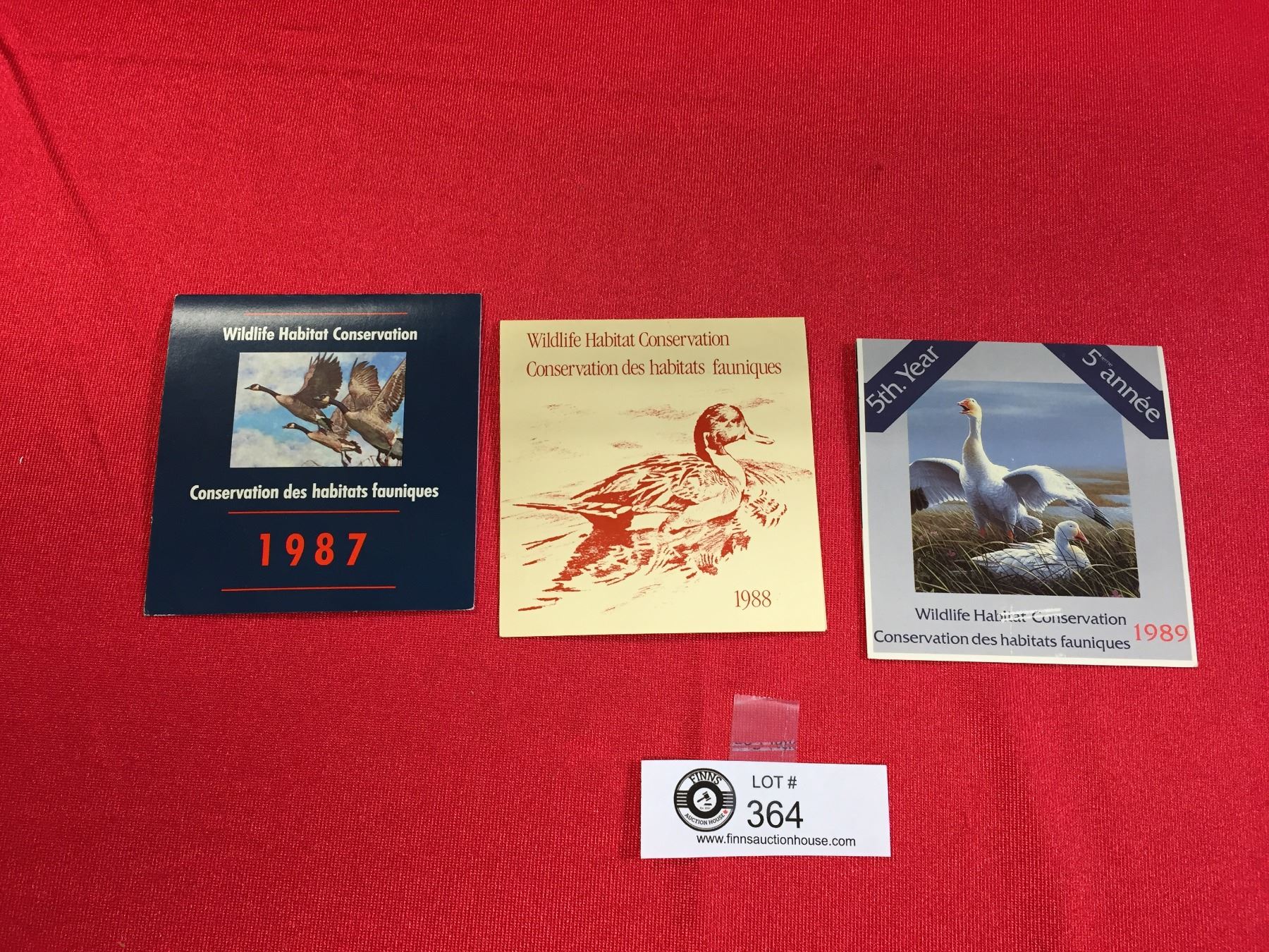 Lot of 3 Canadian Wildlife Habitat Conservation Stamps. 1987; 1988. and 1989