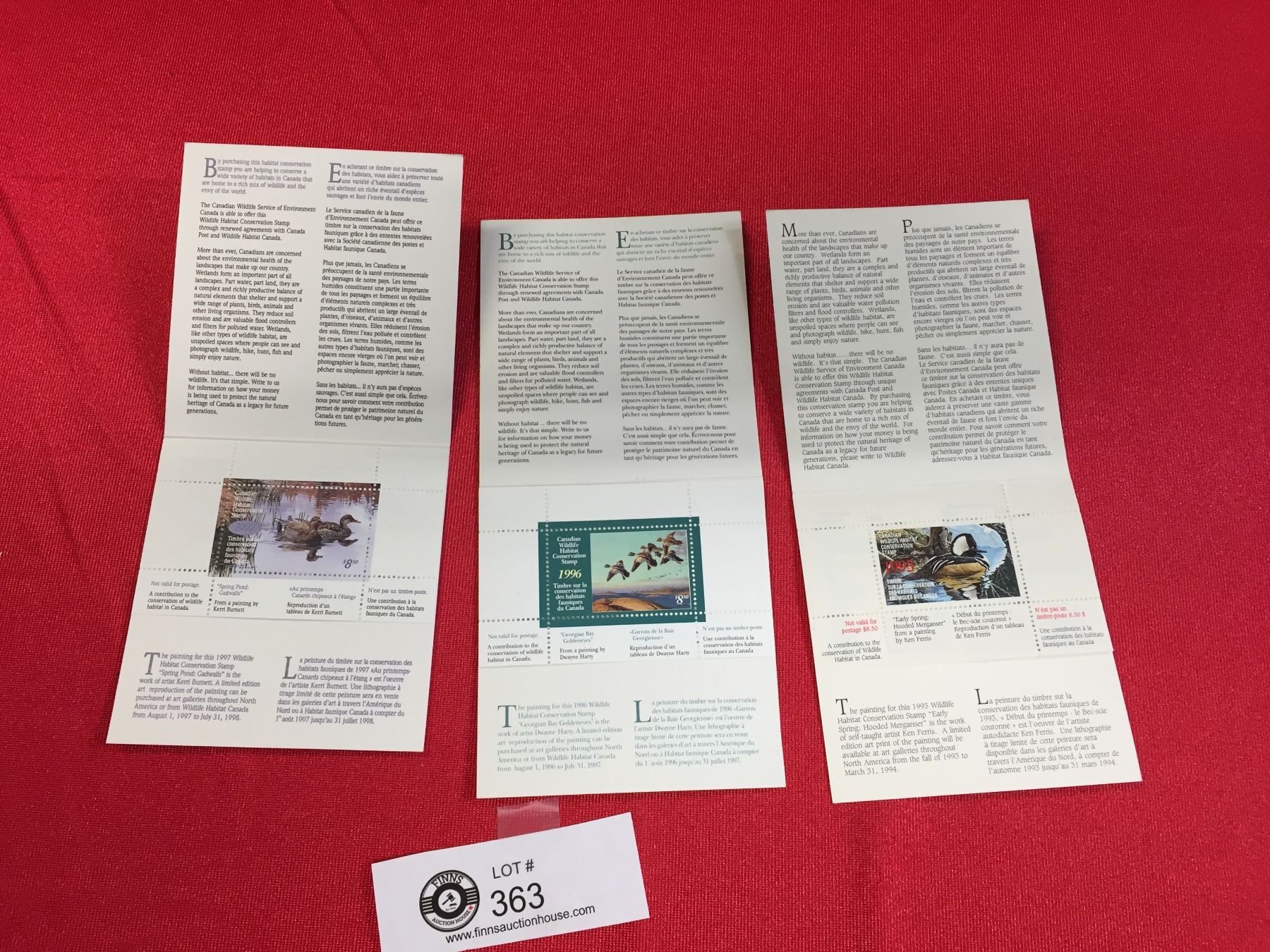 Lot of 3 Canadian Wildlife Habitat Conservation Stamps. 1993; 1996. and 1997