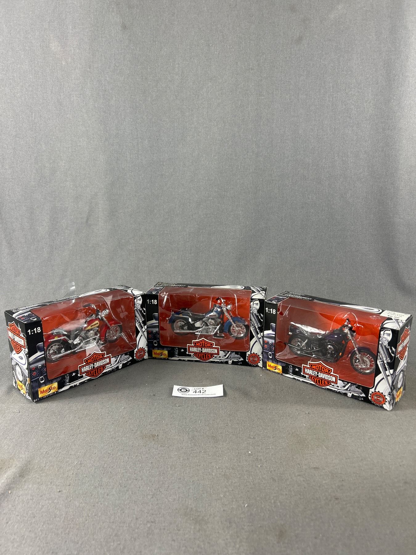 Lot of 3 Maisto 1:18 Scale Harley Davidson Motorcycles in Boxes