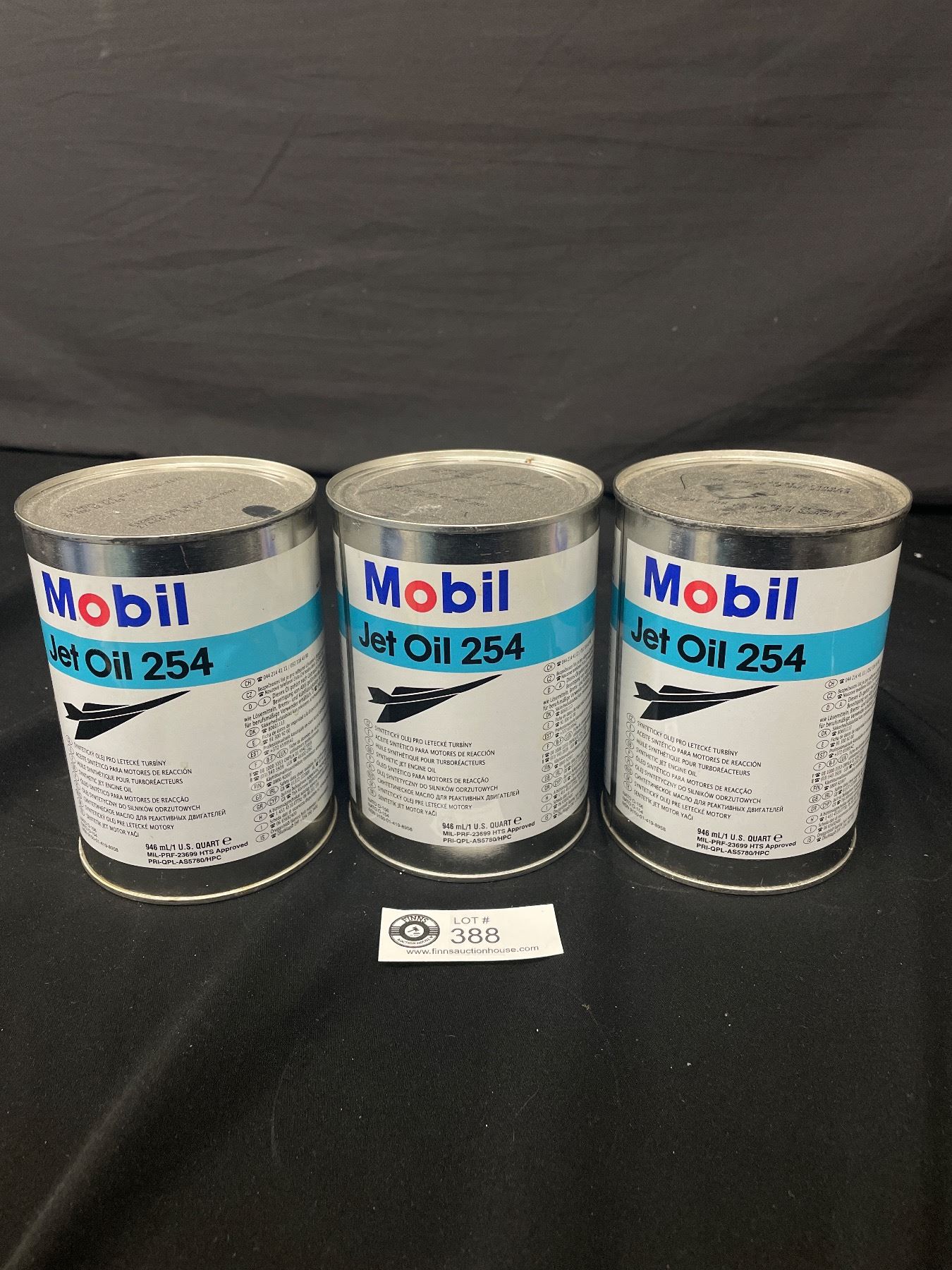 Lot of 3 Mobil Jet Oil 254 - 1 US Quart - Full