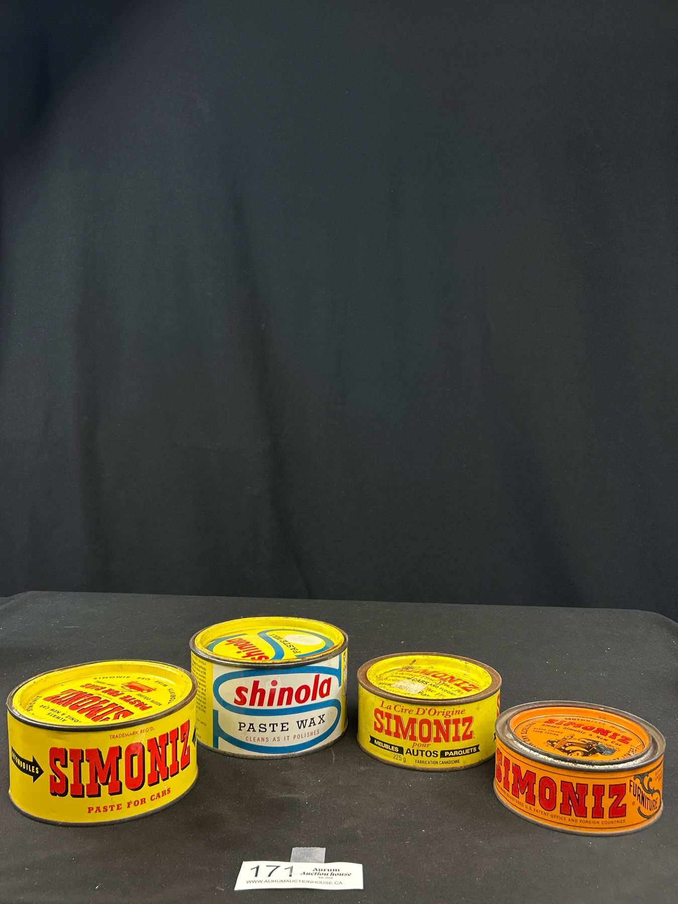 Lot of 3 Simoniz Car Wax Tins + Shinola Paste Wax Tin, All Full