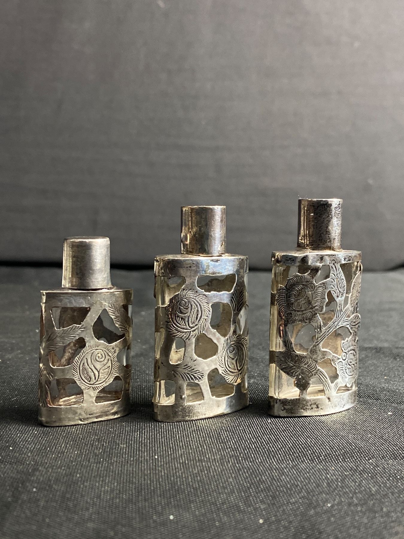 Lot of 3 Small Sterling Silver Perfume Bottles