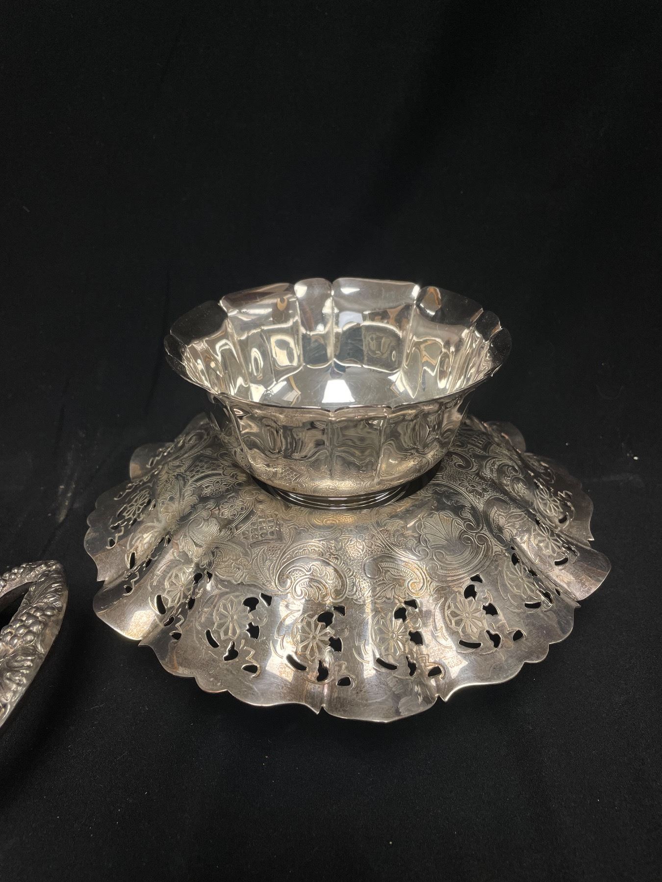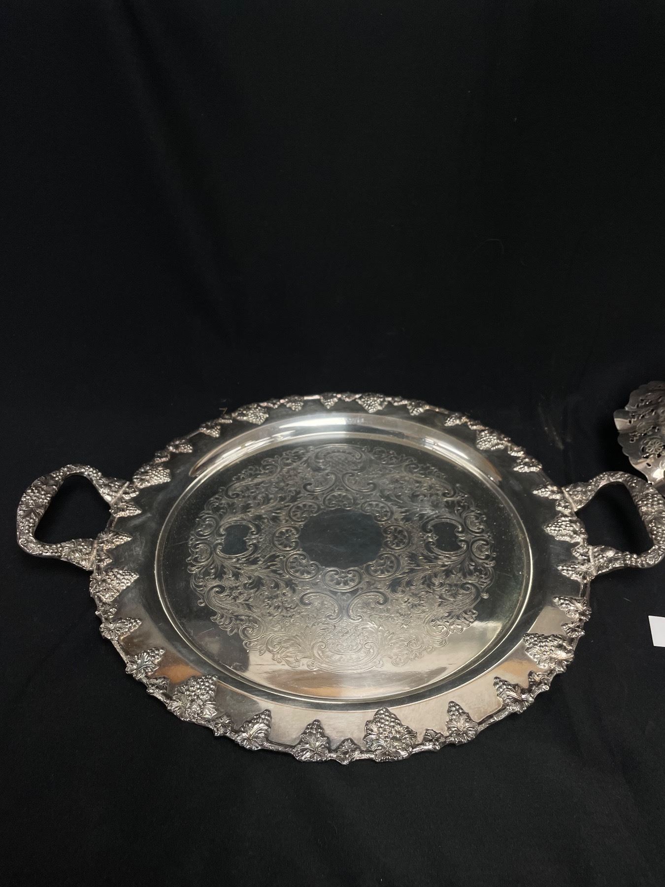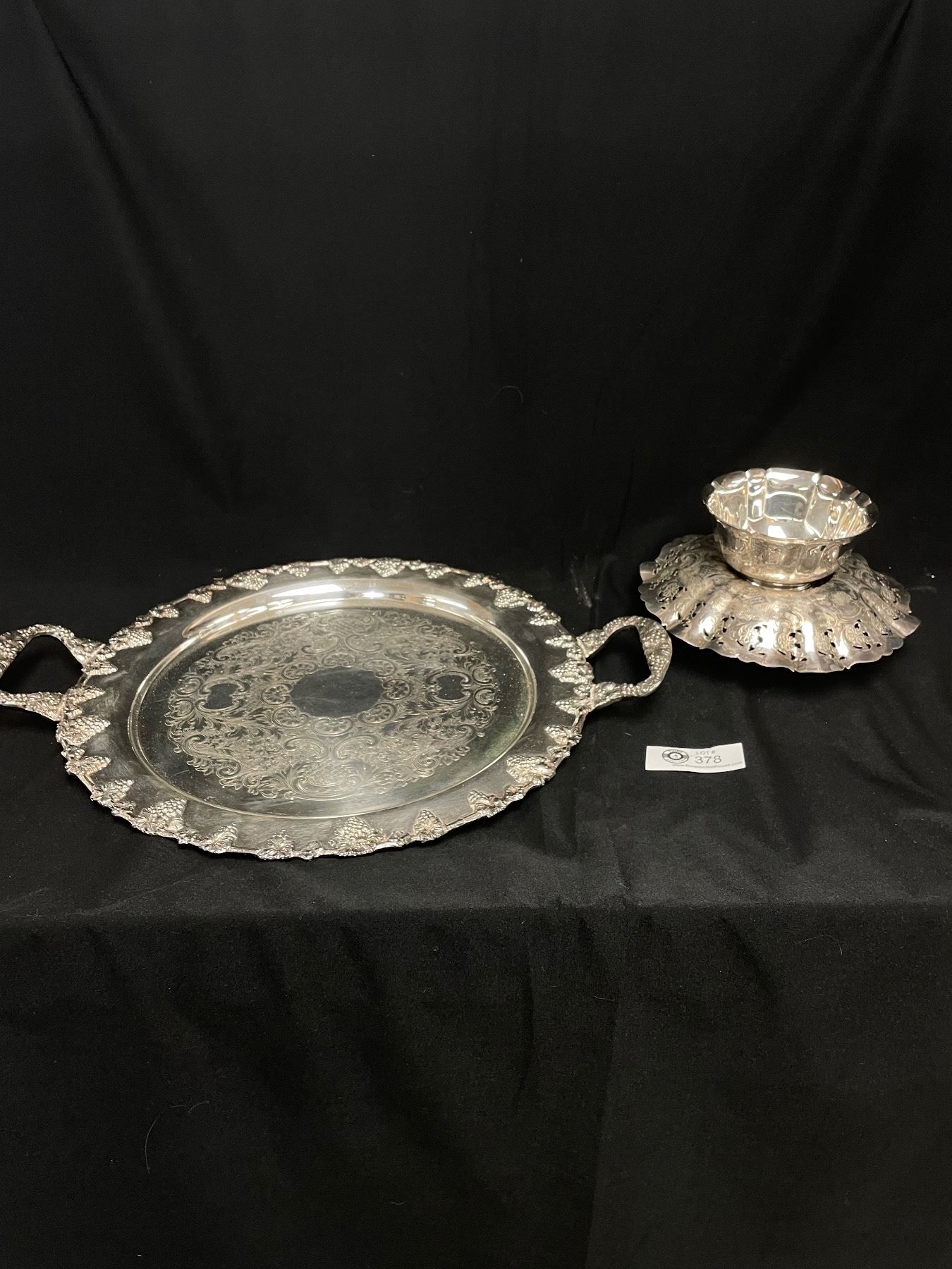 Lot of 3 Vintage Collectible High Quality Silver Plated Pieces Including a Beautiful 14.5" Diameter Round Serving Tray