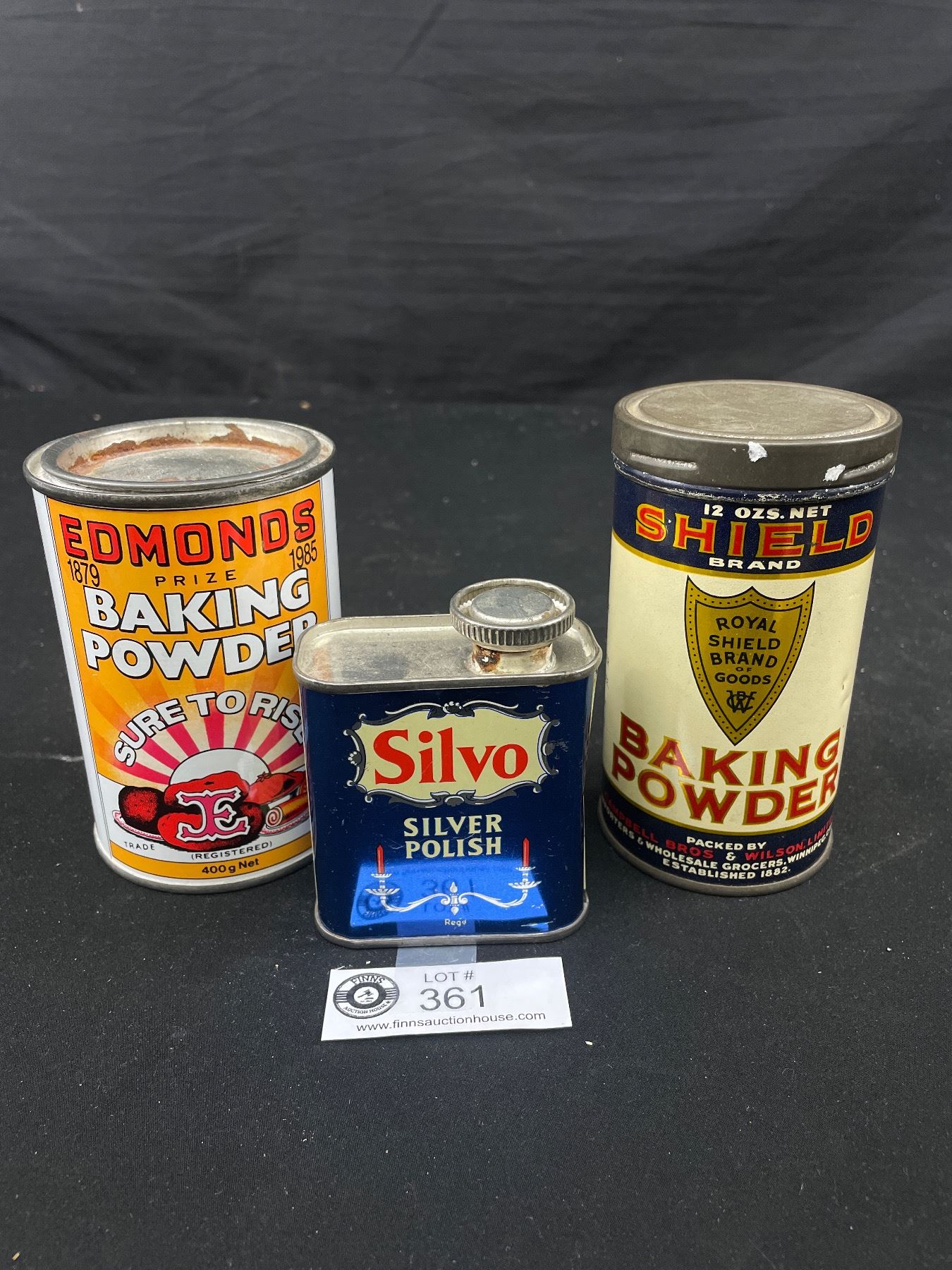 Lot of 3 Vintage Household Tins. 2 Baking Powder and 1 Silver Polish