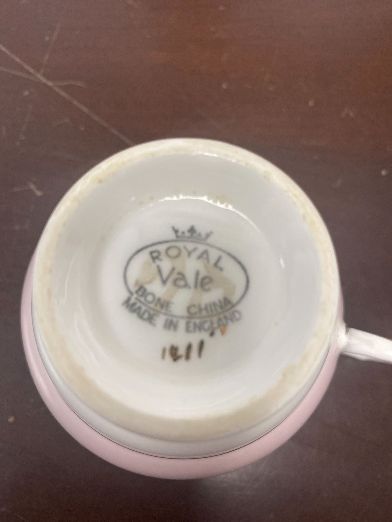 Lot of 3 Vintage Pink Teacups and Saucers. Colclough and Royal Vale. Great Condition. Very small gold wear on 1 of the teacups, but barely noticeable. No Chips or cracks