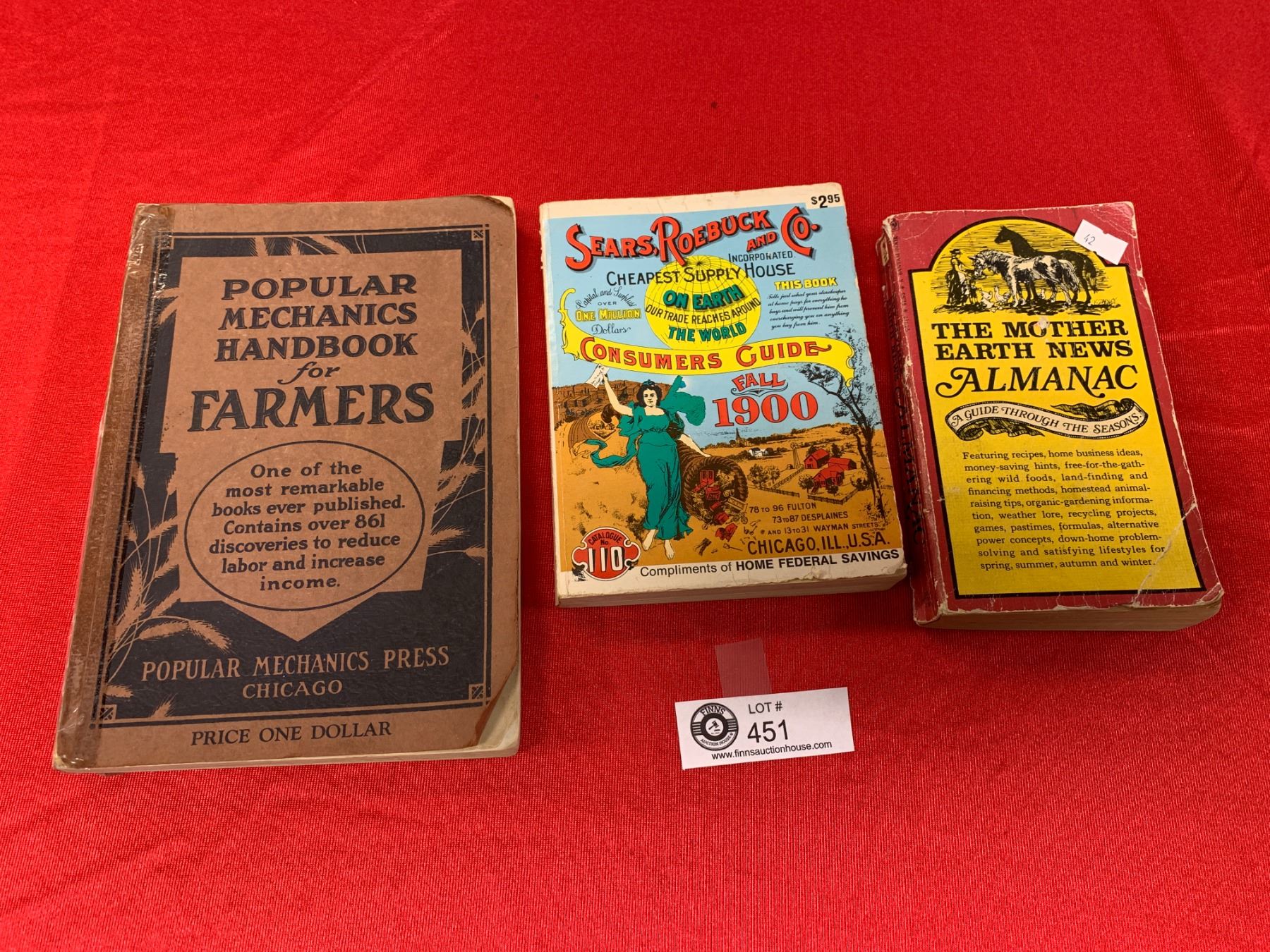 Lot of 3 Vintage Popular Mechanic Handbooks for Farmers. Reprint of Sears Roebuck Co and other Books
