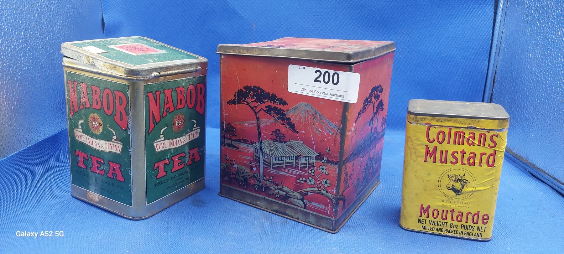 Lot of 3 vintage tins, inc. Nabob, Coleman's Mustard